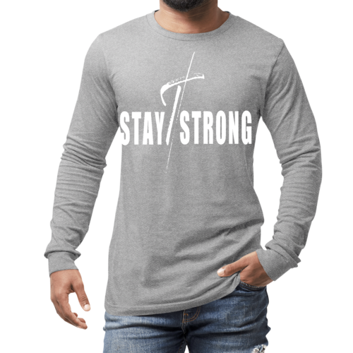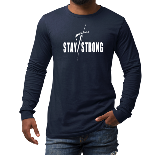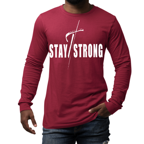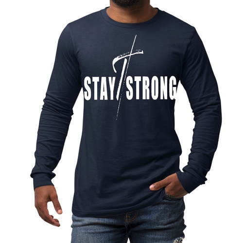 Introducing the Men's Long Sleeve Graphic T-shirt, a perfect blend of style and comfort. Featuring a striking 'Stay Strong' cross white print, this t-shirt is designed for those who want to make a statement while enjoying the benefits of high-quality fabric. Whether you're heading to the gym, running errands, or just lounging at home, this t-shirt is your ideal companion.