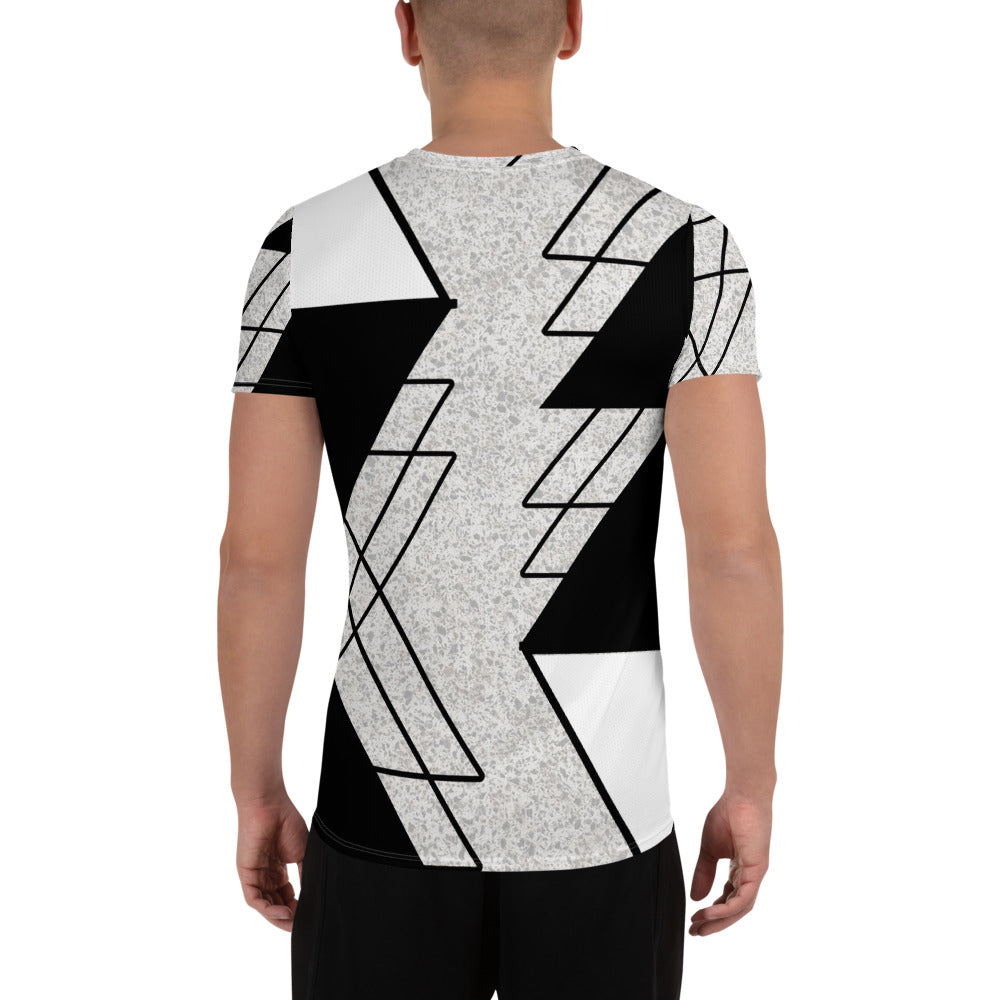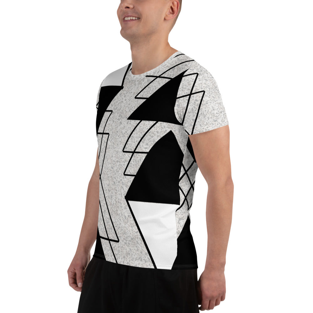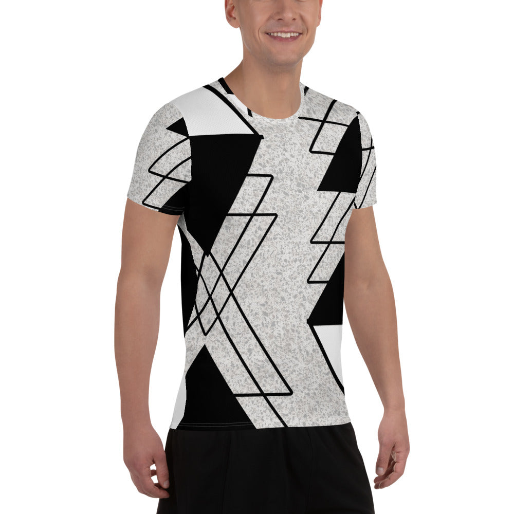 The Men's Stretch Fit Athletic Sports T-shirt features a modern triangular colorblock design in Black and White Ash Grey, making it not only functional but also stylish. The classic crew neckline and short sleeves provide a timeless look that can easily transition from the gym to casual outings. Pair it with your favorite shorts or joggers for a complete athletic look.