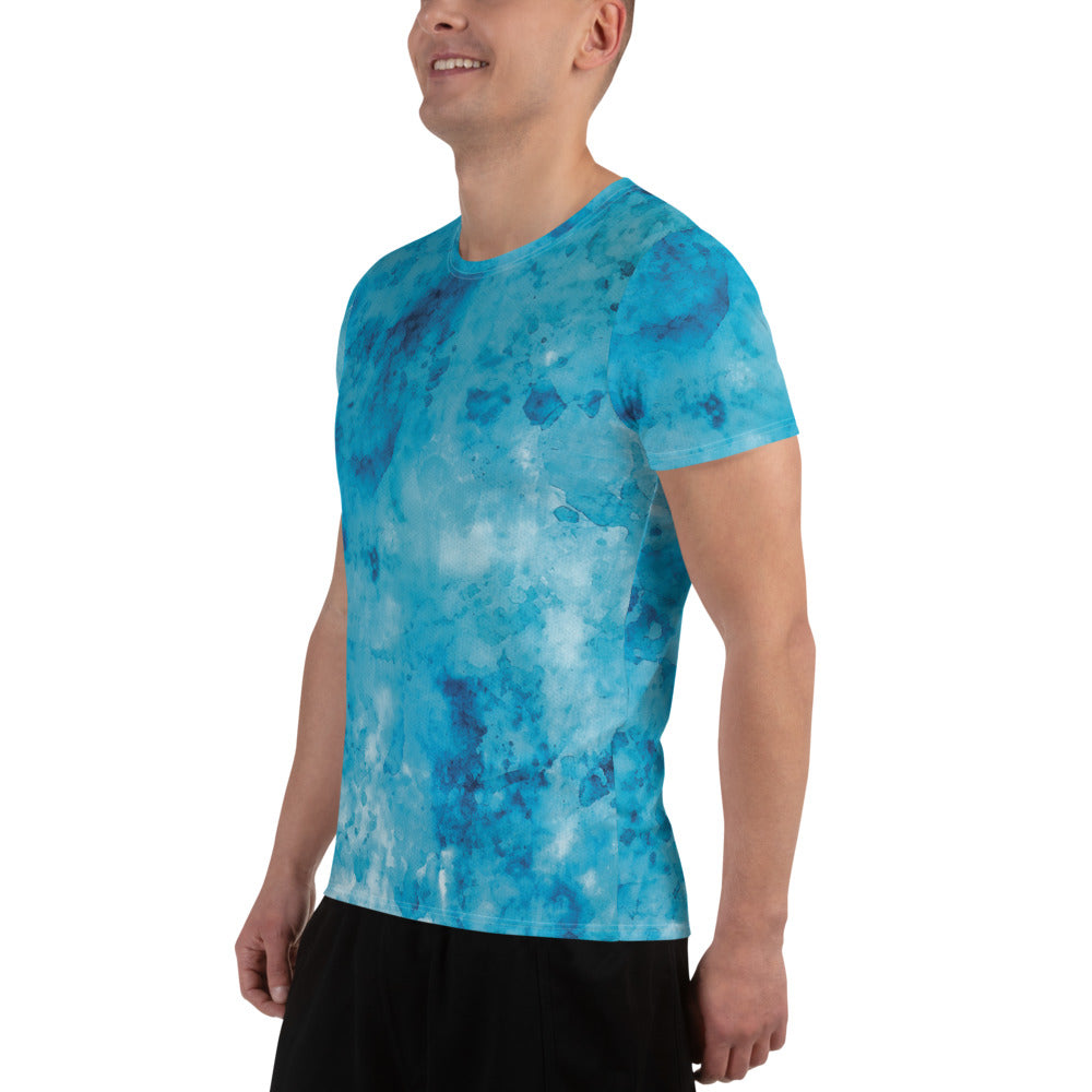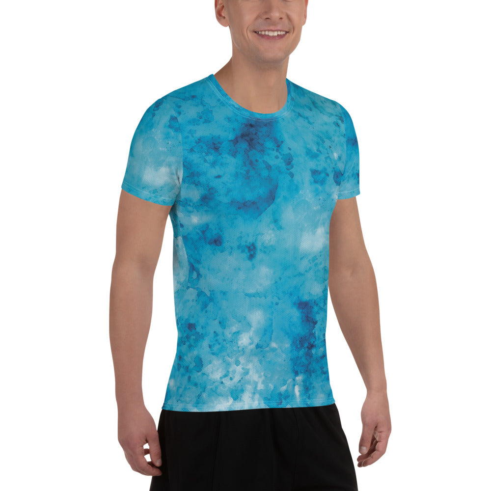 In summary, the Men's Stretch Fit Athletic Sports T-shirt in blue marble print is the perfect blend of style, comfort, and performance. With its moisture-wicking properties, durable construction, and versatile design, it is an ideal choice for anyone looking to enhance their athletic wardrobe. Experience the difference that quality athletic wear can make in your performance and comfort.