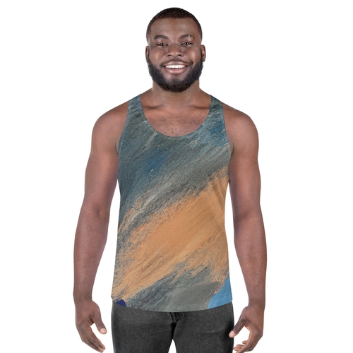 Elevate your wardrobe with the Mens Stretch Fit Tank Top in blue and orange abstract pattern. This tank top is not just a piece of clothing; it's a statement of style and comfort that you can wear for any occasion. Don't miss out on the opportunity to add this essential item to your collection!