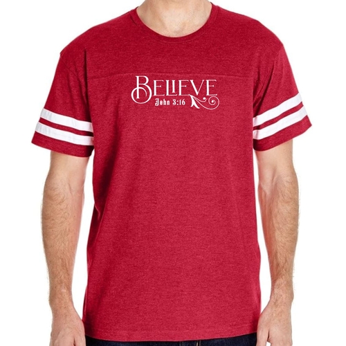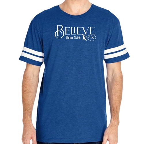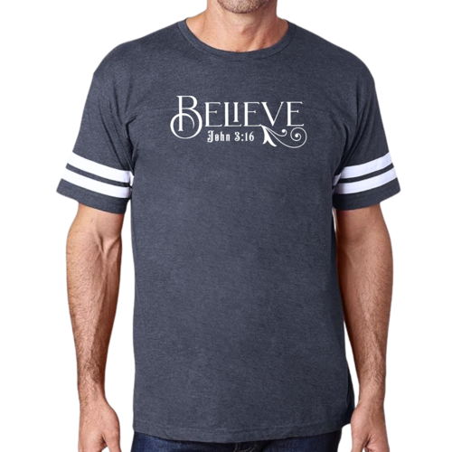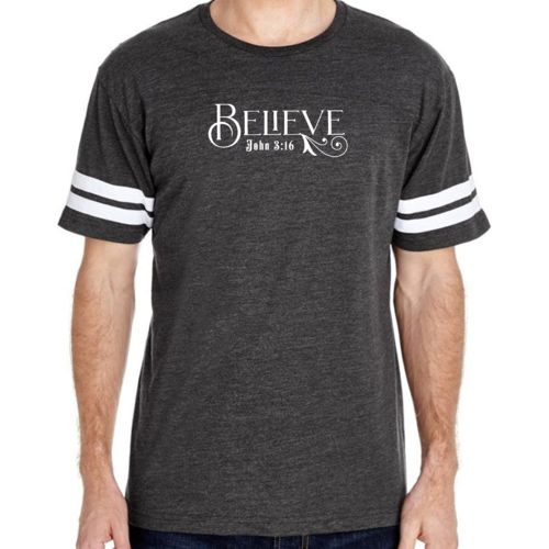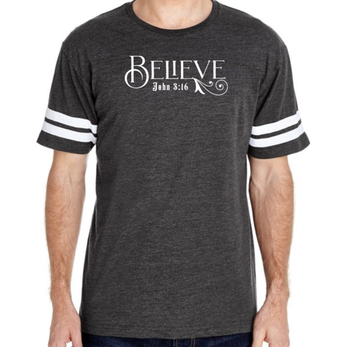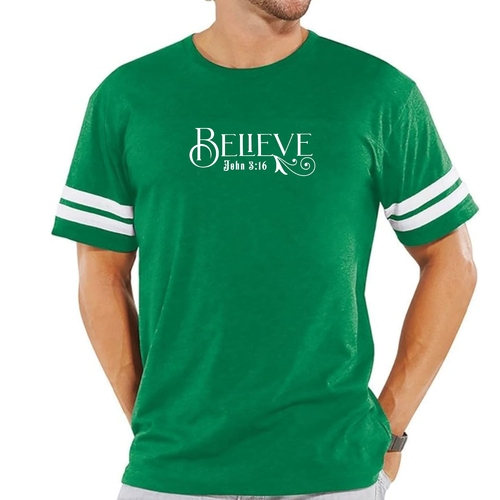 This t-shirt features a vintage-inspired design that is sure to turn heads. The eye-catching graphic of John 3:16 serves as a reminder of faith and inspiration, making it a meaningful piece for any believer. The two contrast stripes on the sleeves add a sporty touch, making it perfect for both athletic and casual settings. The ribbed collar provides a snug fit, while the double needle stitching on the sleeves and bottom hem ensures that this t-shirt will withstand the test of time.