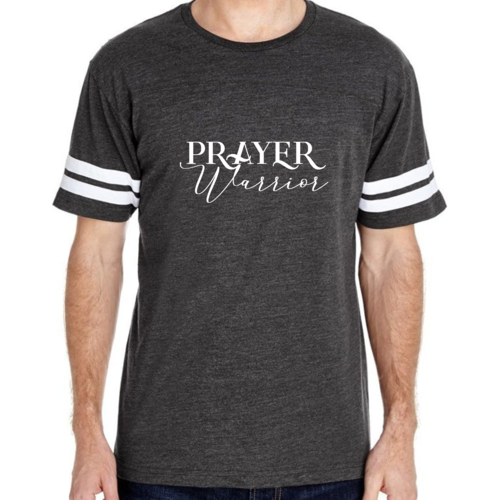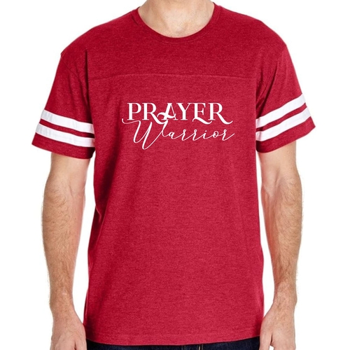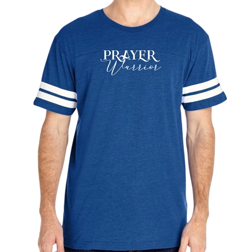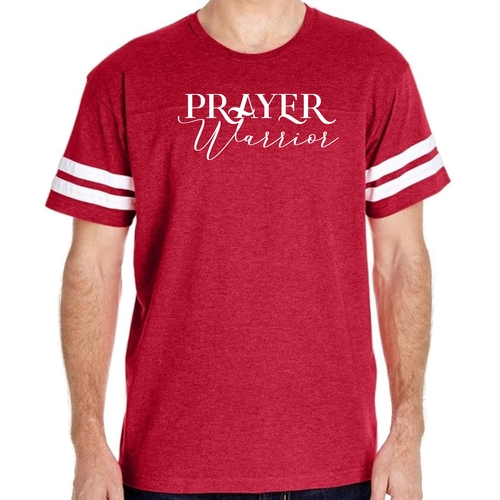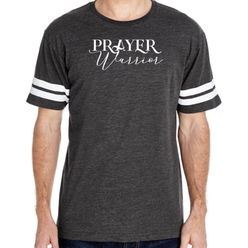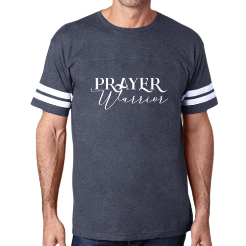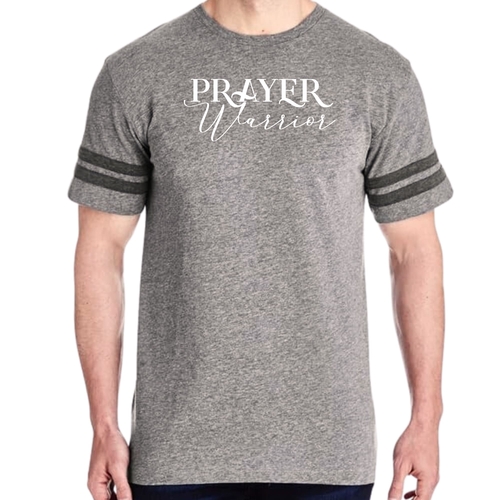 The vintage-inspired design of our Men's Vintage Sport Graphic T-shirt is sure to turn heads. The Prayer Warrior Script style adds a unique touch that resonates with those who appreciate both fashion and faith. The two contrast stripes on the sleeves enhance the sporty look, making it a versatile addition to your wardrobe.