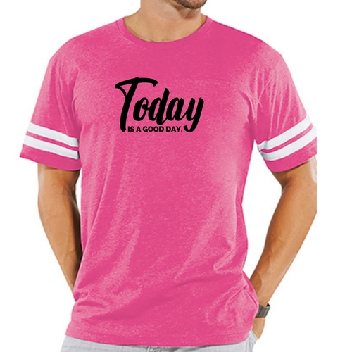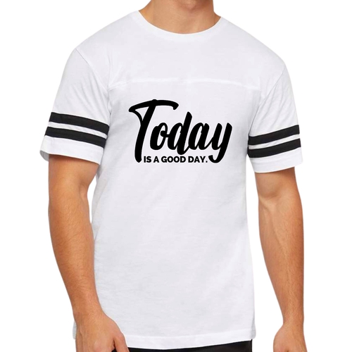 The vintage-inspired graphic on the front of the shirt is not only eye-catching but also embodies a laid-back, sporty vibe. The 'Today is a Good Day' illustration serves as a daily reminder to embrace positivity, making it a great conversation starter. Additionally, the t-shirt features two contrast stripes on the sleeves, adding a sporty flair that enhances its overall aesthetic.
