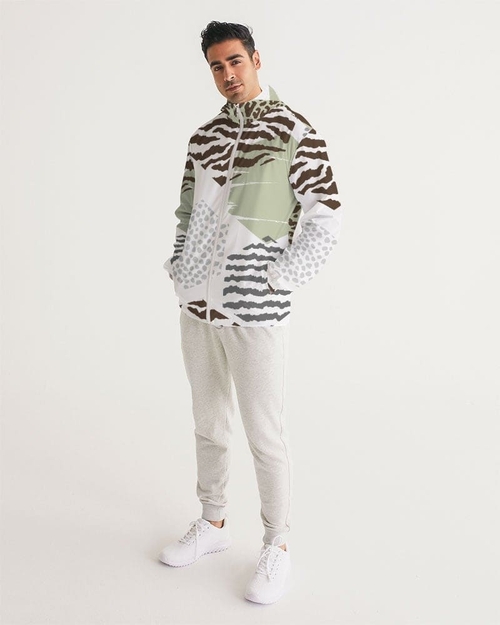 Introducing our Men's Windbreaker Jacket, a perfect blend of style and functionality designed to keep you comfortable during windy and rainy seasons. This jacket features a striking brown and green geometric pattern that not only looks great but also stands out in any crowd. Handmade with care, this windbreaker is crafted from lightweight, water-resistant fabric, making it an essential addition to your wardrobe.