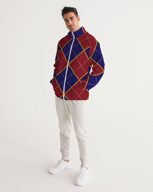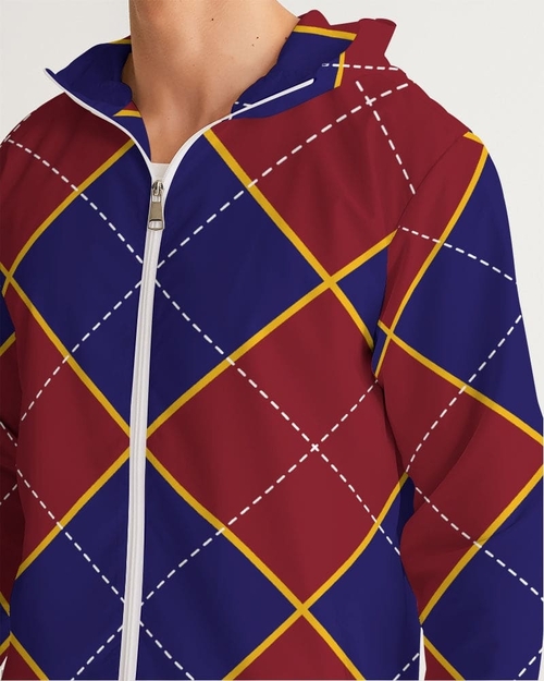 The Red and Blue Argyle pattern adds a touch of sophistication and flair to this classic windbreaker. Argyle is a timeless design that has been popular for decades, making this jacket a fashionable choice for men of all ages. Whether you're heading to a casual gathering or a day out in the park, this jacket will elevate your outfit.