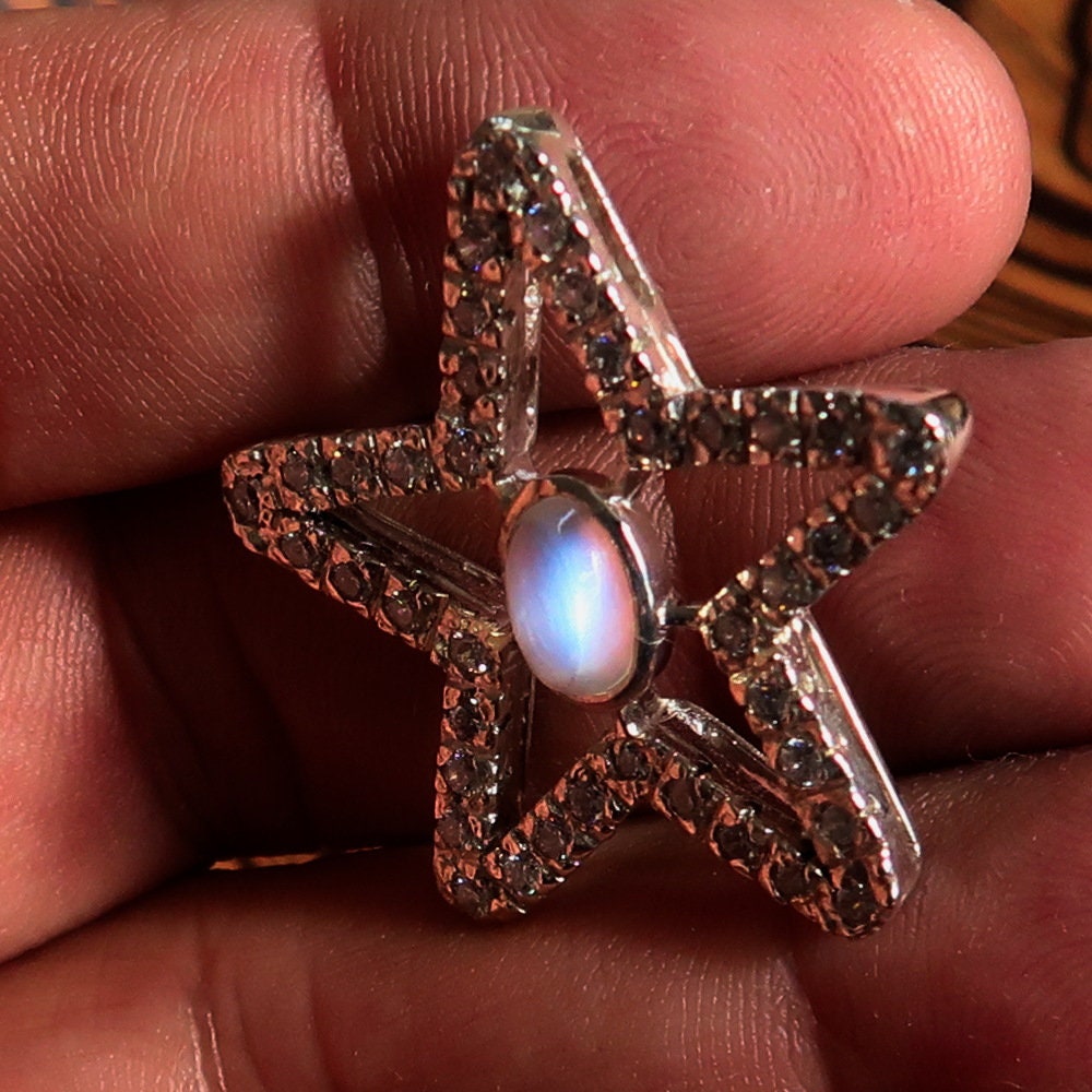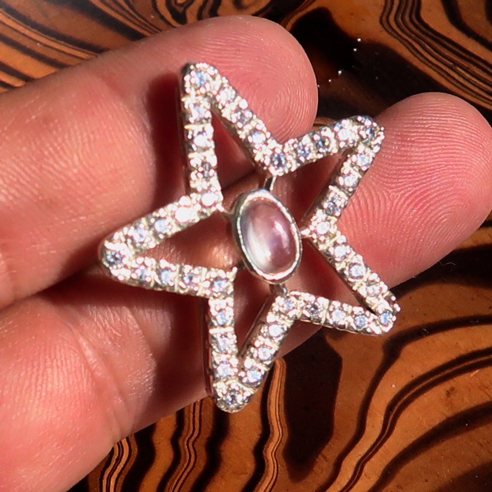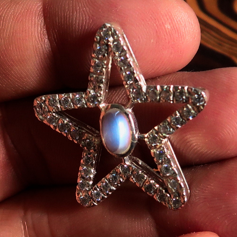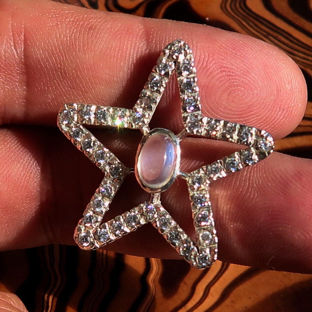 Introducing our exquisite Moonstone Pendant, crafted from high-quality 925 sterling silver. This stunning necklace features a beautiful star-shaped design, making it a perfect accessory for any occasion. The pendant is adorned with a captivating moonstone and sparkling cubic zirconias, adding a touch of elegance and sophistication to your jewelry collection.