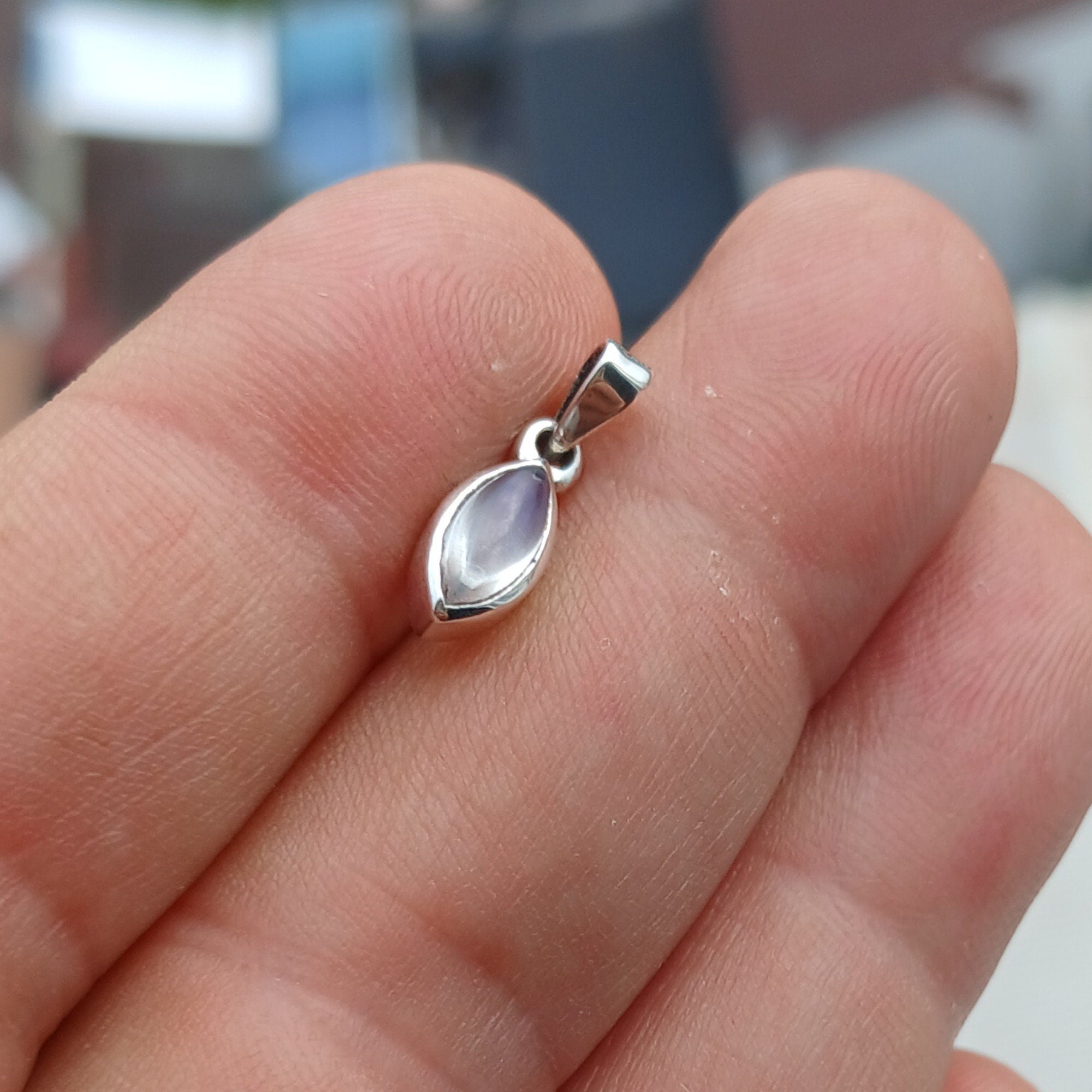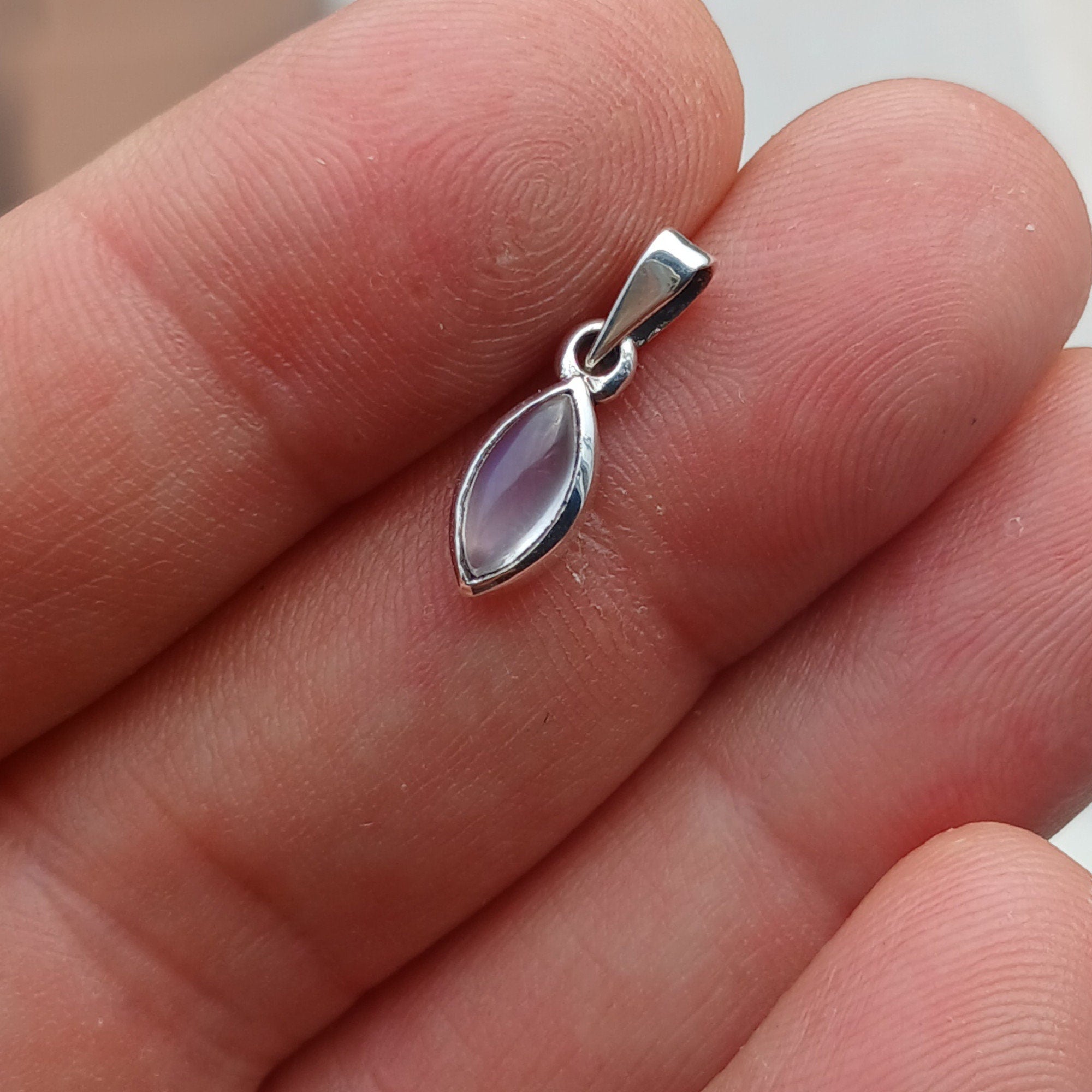 With dimensions of 17 mm long (including the bail) and 5 mm wide, this pendant is designed to make a statement without being overpowering. The Moonstone itself measures 9 mm x 4 mm, showcasing its natural beauty and captivating colors. The pendant also features a bail with a dimension of 3 mm, allowing for easy attachment to a chain or necklace of your choice.