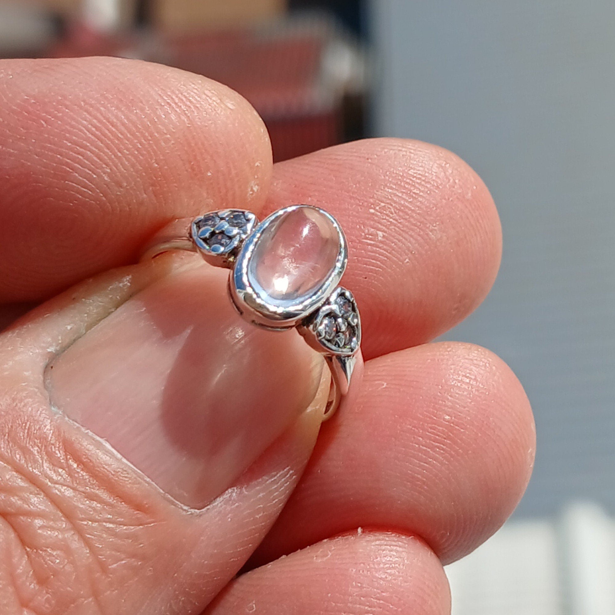 This stunning ring is designed with comfort in mind. It is available in a US size 6, which is a popular choice for many women. The ring measures 9 mm along the finger, ensuring a comfortable fit that can be worn all day long. The centerpiece Moonstone measures 8 mm x 6 mm, making it a noticeable yet elegant addition to your jewelry collection.