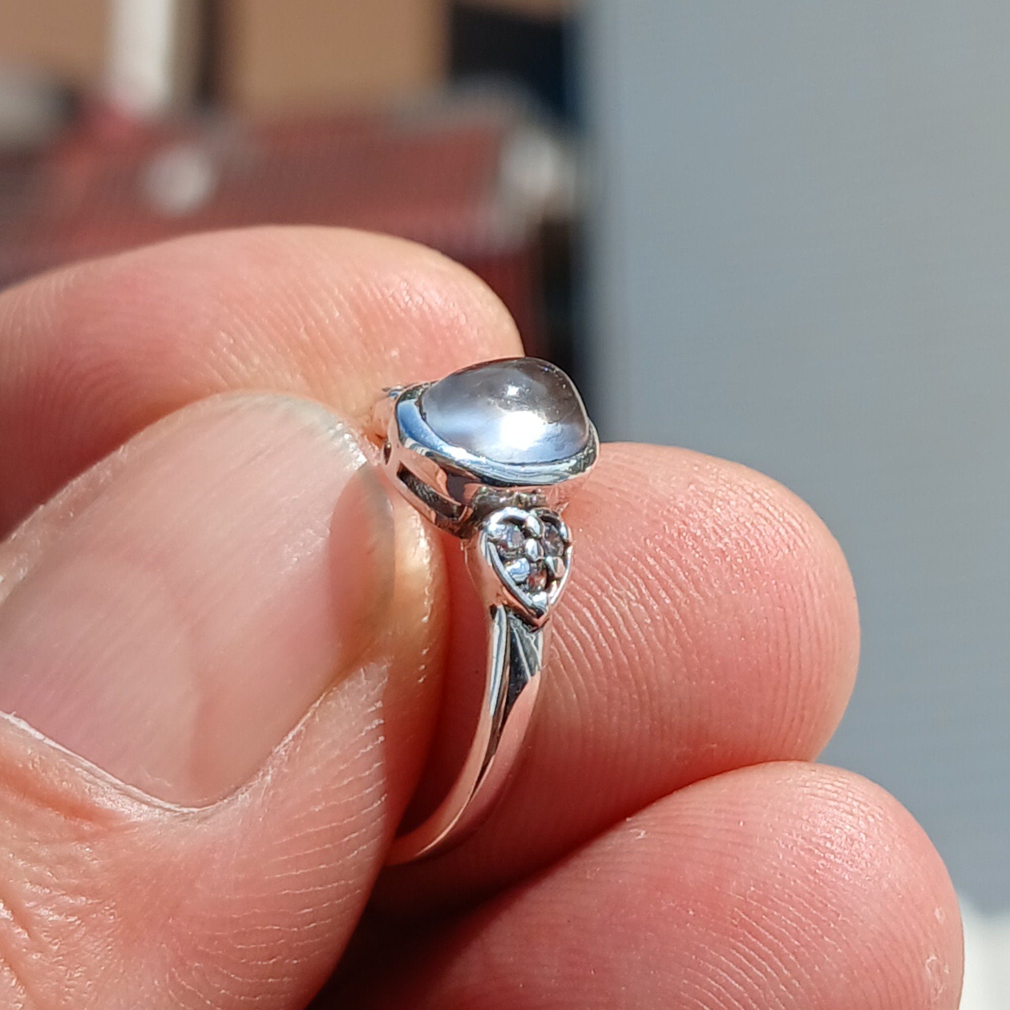 Crafted from high-quality sterling silver, the Natural Moonstone Ring boasts a mirror-polished finish that enhances its sleek and shiny appearance. The ring is hallmarked with the 925 stamp, a mark of authenticity that assures you of its quality and durability. Sterling silver is not only beautiful but also hypoallergenic, making it a great choice for those with sensitive skin.