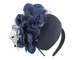 Navy woolen pillbox topped with large silk flower. Made in Melbourne, this racing fascinator sports exceptional quality and style.