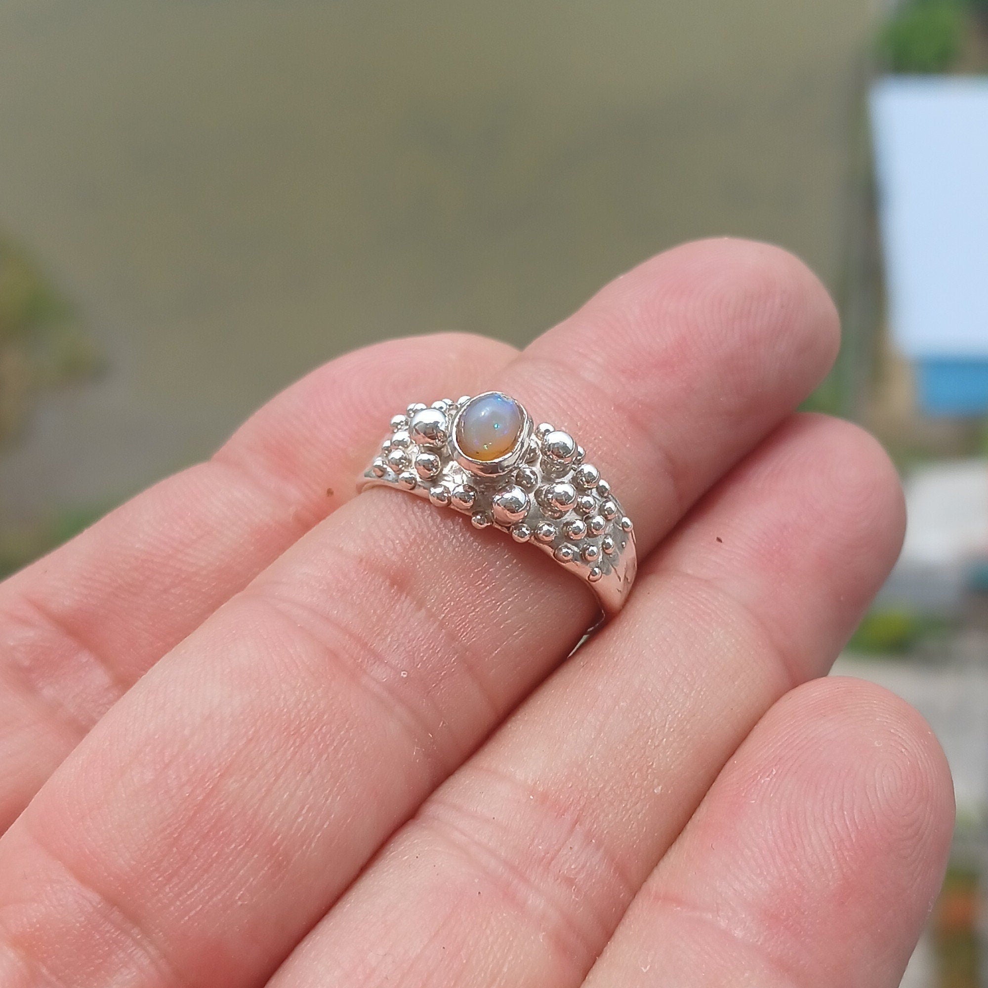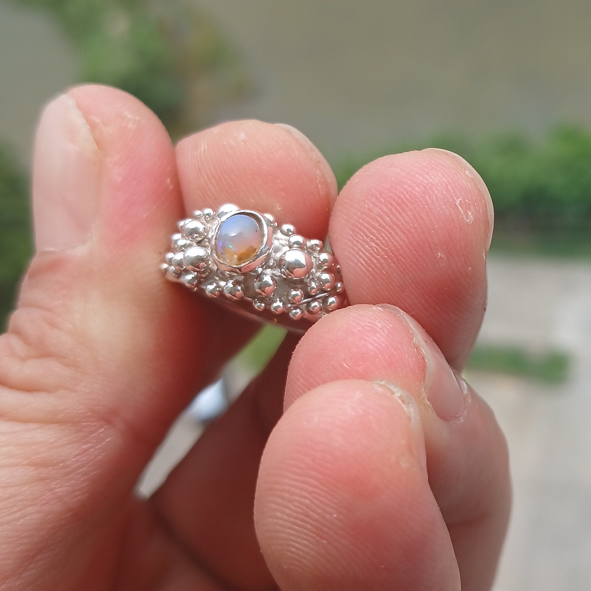 To maintain the beauty of your Opal Ring, we recommend avoiding exposure to harsh chemicals and storing it in a soft pouch or jewelry box when not in use. Regularly clean the ring with a soft cloth to keep it looking its best. With proper care, your opal ring will remain a stunning piece in your jewelry collection for years to come.