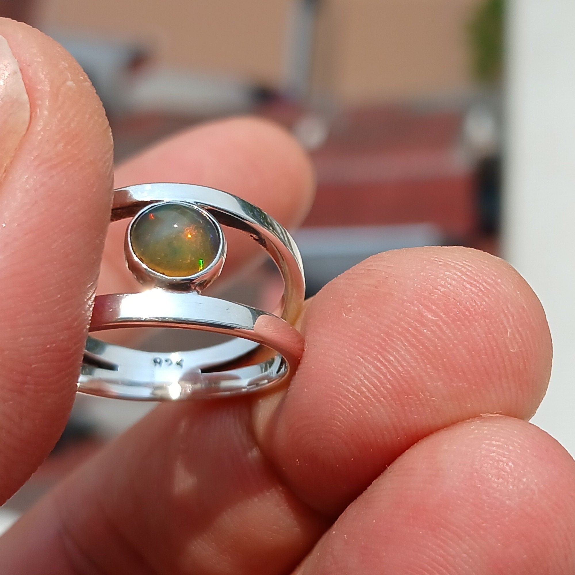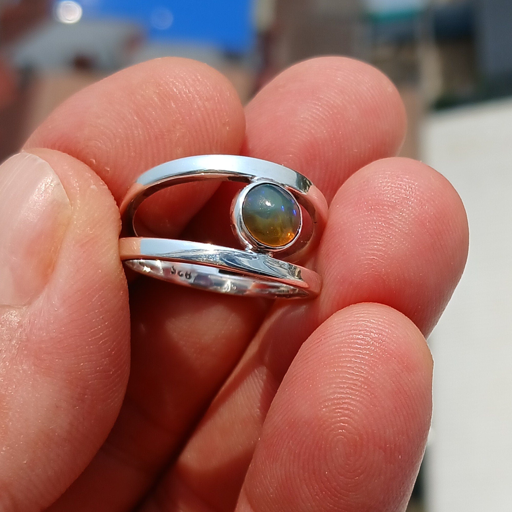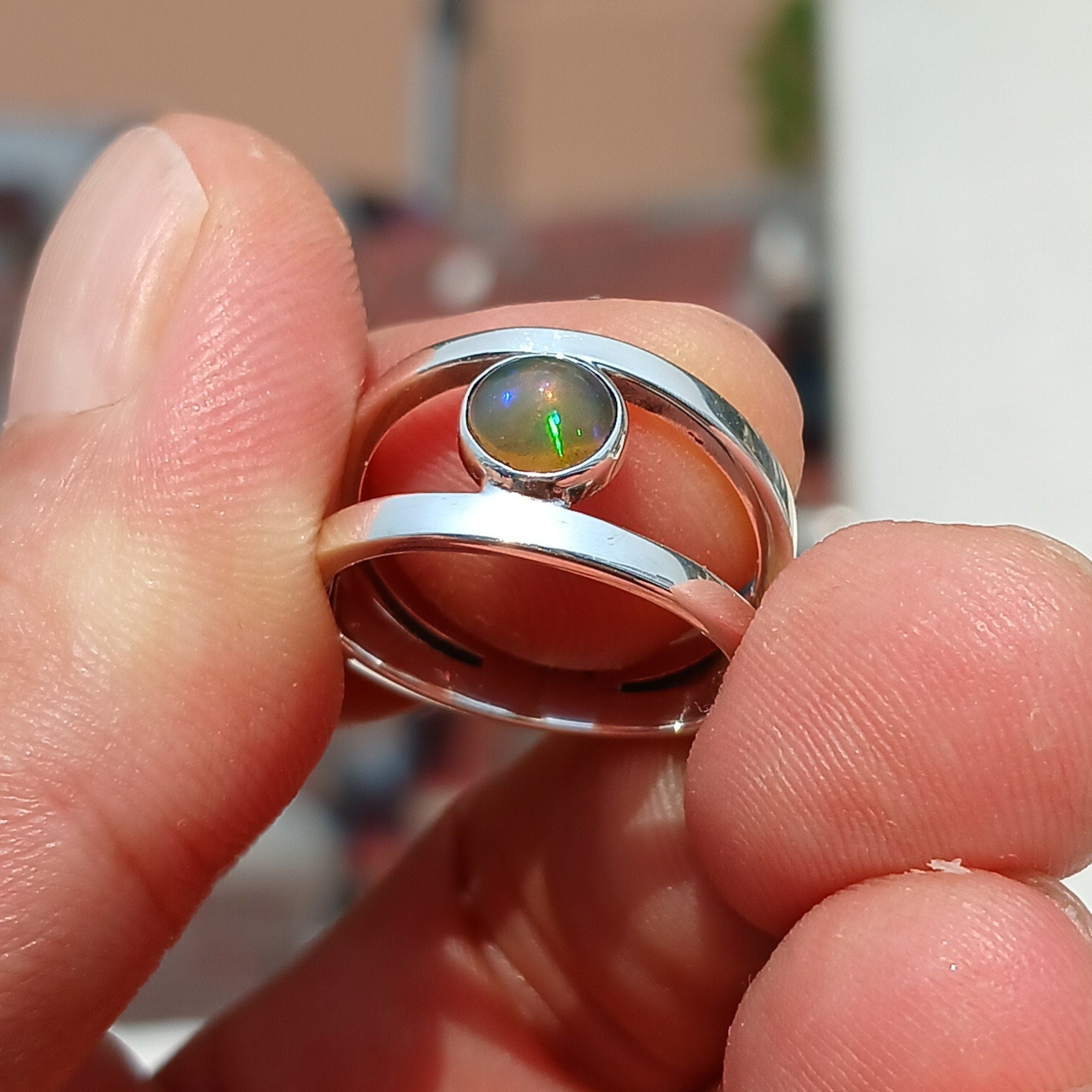 Dropship Opal Ring, Opal Silver Ring, Sterling Silver Solitaire Ring, Natural