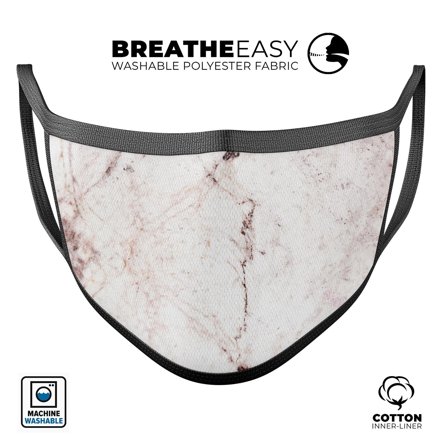 Introducing our stunning Pale Pink Marble Surface mouth cover, a perfect blend of style and functionality. This reusable 3D face mask is designed with comfort in mind, making it an ideal choice for daily wear. Crafted in the USA, each mask is made using advanced dye-sublimation techniques, ensuring vibrant colors and patterns that won't fade over time. Whether you're running errands, enjoying outdoor activities, or simply looking for a stylish accessory, this mouth cover has you covered.