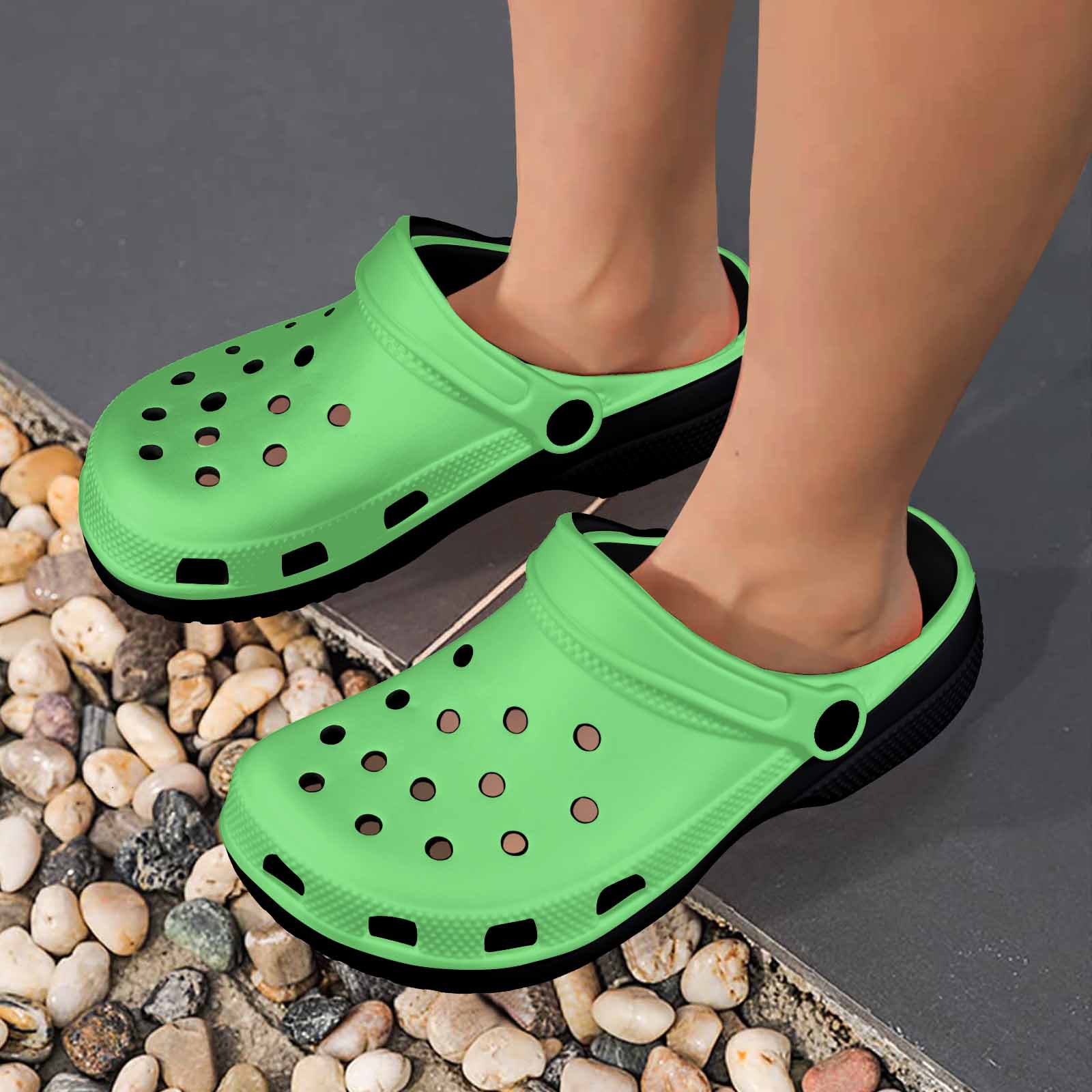 The Pastel Green Adult Clogs are crafted from EVA, a material known for its lightweight properties. This means you can wear them all day without feeling weighed down. The soft texture of the clogs ensures that your feet remain comfortable, whether you're walking on sand, grass, or tile.