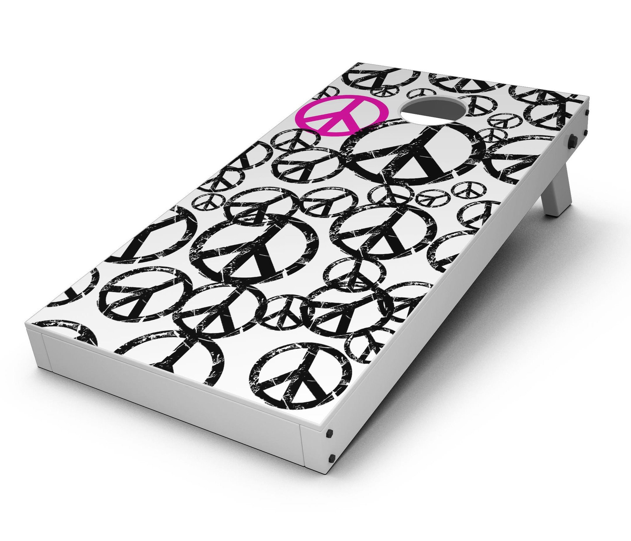 Enhance your outdoor games with the stunning Peace Collage CornHole Board Skin Decal Kit. These premium vinyl wraps are designed to transform your Cornhole boards into eye-catching pieces that reflect your personality and style. Measuring 24.5 inches in width and 48.5 inches in height, these skins provide ample coverage, allowing you to trim them for a perfect fit on your boards.