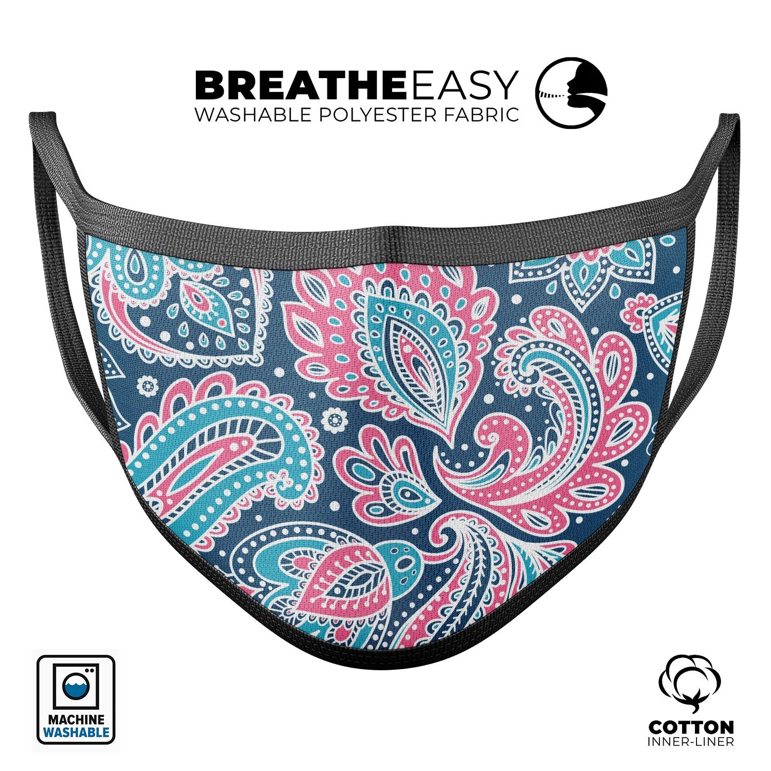 Introducing the Poppin Pastel Paisley mouth cover, a stylish and functional solution for your daily needs. This reusable 3D face mask is crafted with care in the USA, specifically in our Danville, VA warehouse. Utilizing advanced dye-sublimation printing techniques, we ensure that each mask is not only visually appealing but also durable and comfortable for long-term wear.