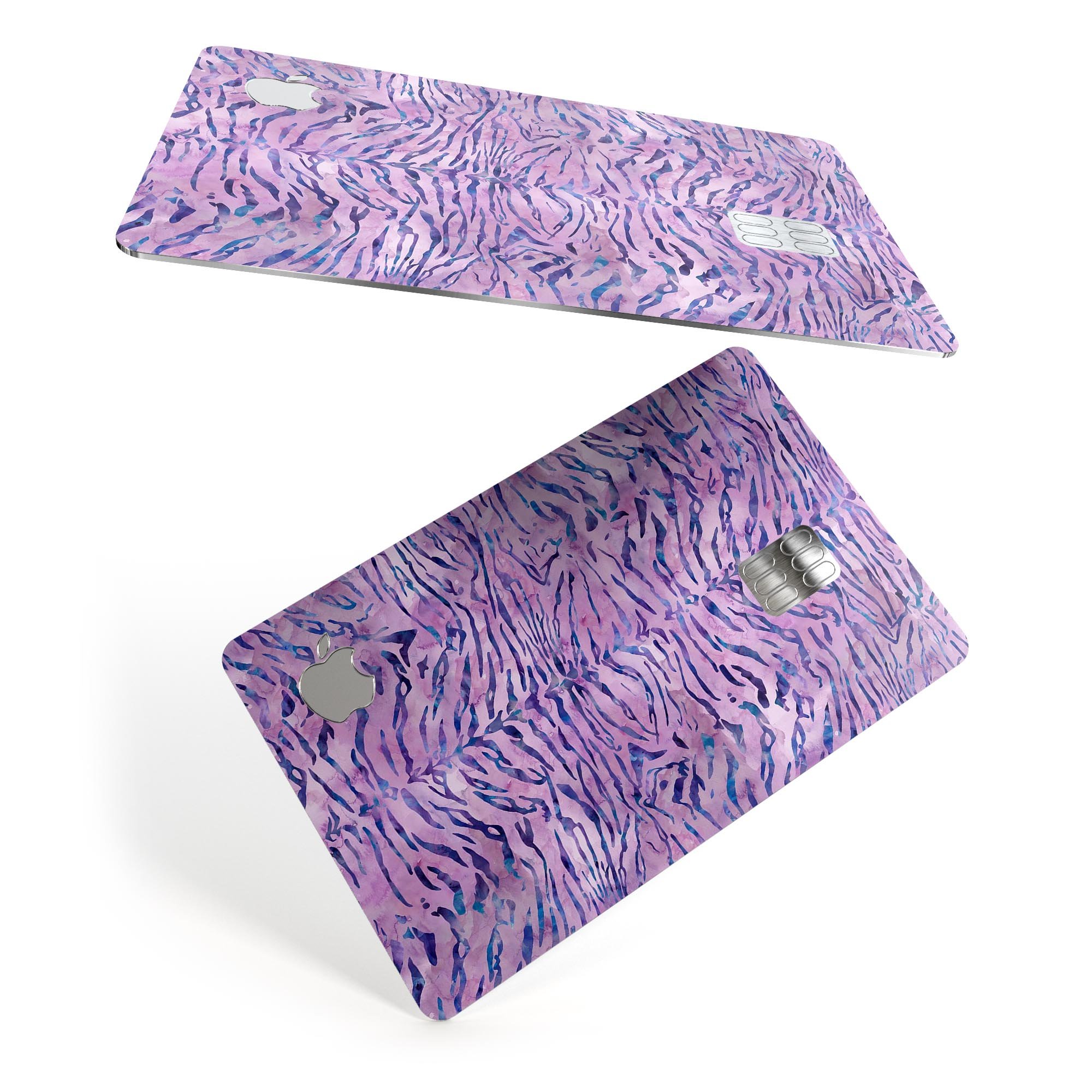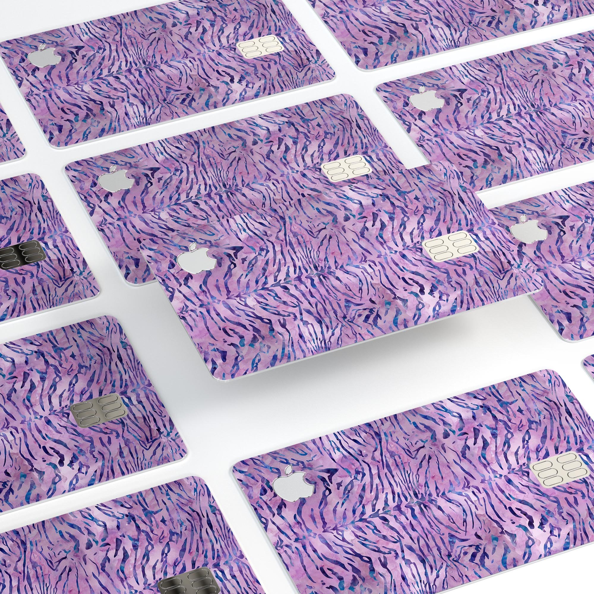 Introducing the Purple Watercolor Tiger Pattern - Premium Protective Decal Skin-Kit, the perfect accessory for your new Apple Card. This stylish skin not only enhances the aesthetic appeal of your card but also provides robust protection against daily wear and tear. Made from high-quality premium vinyl, this decal skin is designed to withstand the rigors of everyday use while keeping your card looking pristine.