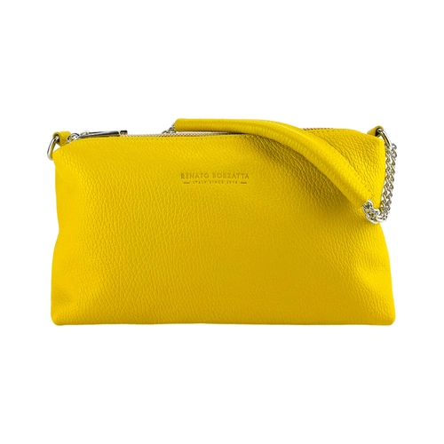 Borsa Donna a Mano con doppia lampo Made in Italy in Vera Pelle, disegnata e realizzata artigianalmente ed interamente con un pellame di primissima qualità. Adatta per ogni occasione ed ogni outfit. Il colore Giallo accentua il suo stile Elegante e Fashion. Il doppio scomparto con chiusure lampo, la rende pratica. Chic il manico con catena Nickel lucido parzialmente rivestito in Vera pelle. Le Dimensioni cm 26 x 14 x 9 sono perfette per portare con te il necessario senza essere troppo ingombrante. Funzionale il doppio scomparto e la tasca interna. Dotata di tracolla di servizio in Vera Pelle regolabile con moschettoni in metallo Nickel lucido. Il Design ricercato e di classe la rendono Esclusiva e adatta a molteplici abbinamenti. La confezione in sacchetto Tnt rende la Borsa Donna a Mano con doppia lampo ideale per un regalo ed al tempo stesso la protegge dalla polvere e dalla luce durante il periodo di inutilizzo.