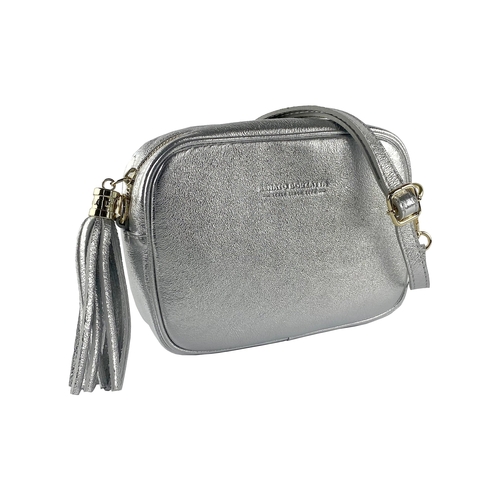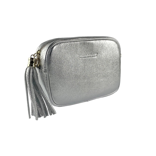 Borsa Donna a Tracolla Made in Italy in Vera Pelle, disegnata e realizzata artigianalmente ed interamente con un pellame di primissima qualità.Ottima Idea Regalo per persone speciali. - Il colore Argento accentua il suo stile Elegante, ma al tempo stesso Fashion. La Chiusura Lampo in metallo Oro Lucido la rendono sicura pratica e versatile. - - Le Dimensioni cm 20 x 15 x 7 sono perfette per portare con te il necessario senza essere troppo ingombrante. Funzionale l'ampio scomparto con tasca interna. Adatta per ogni occasione ed ogni outfit. - La confezione in sacchetto Tnt rende la Tracollina ideale per un regalo ed al tempo stesso la protegge dalla polvere e dalla luce durante il periodo di inutilizzo.