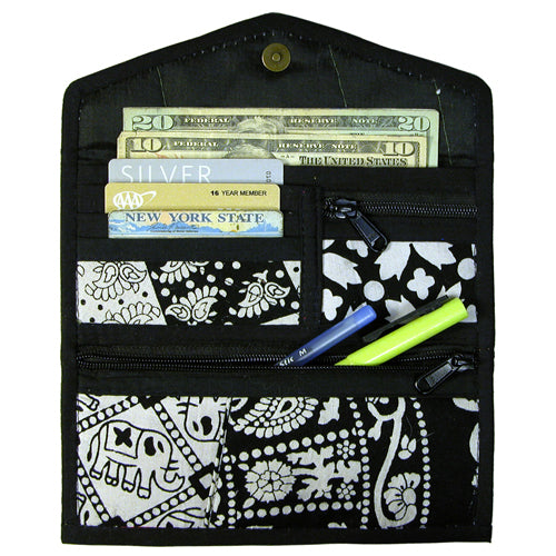 Features multiple card and cash slots