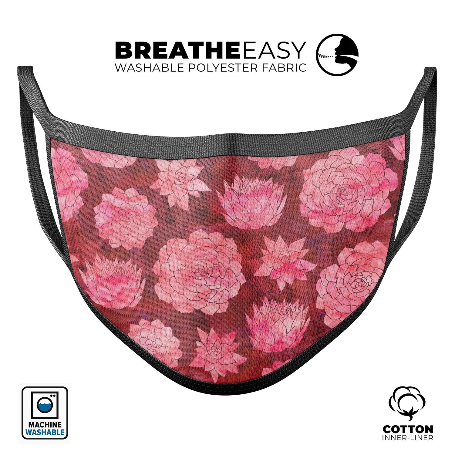 Our Red Floral Succulents face mask is designed for both indoor and outdoor use. It effectively reduces the spread of germs, making it a great choice for protecting yourself and your loved ones in any environment. Whether you're at home, in the office, or out in public, this mask provides an extra layer of safety. However, please note that this mask is not FDA-approved and is not intended for medical use, nor is it proven to reduce the transmission of disease.