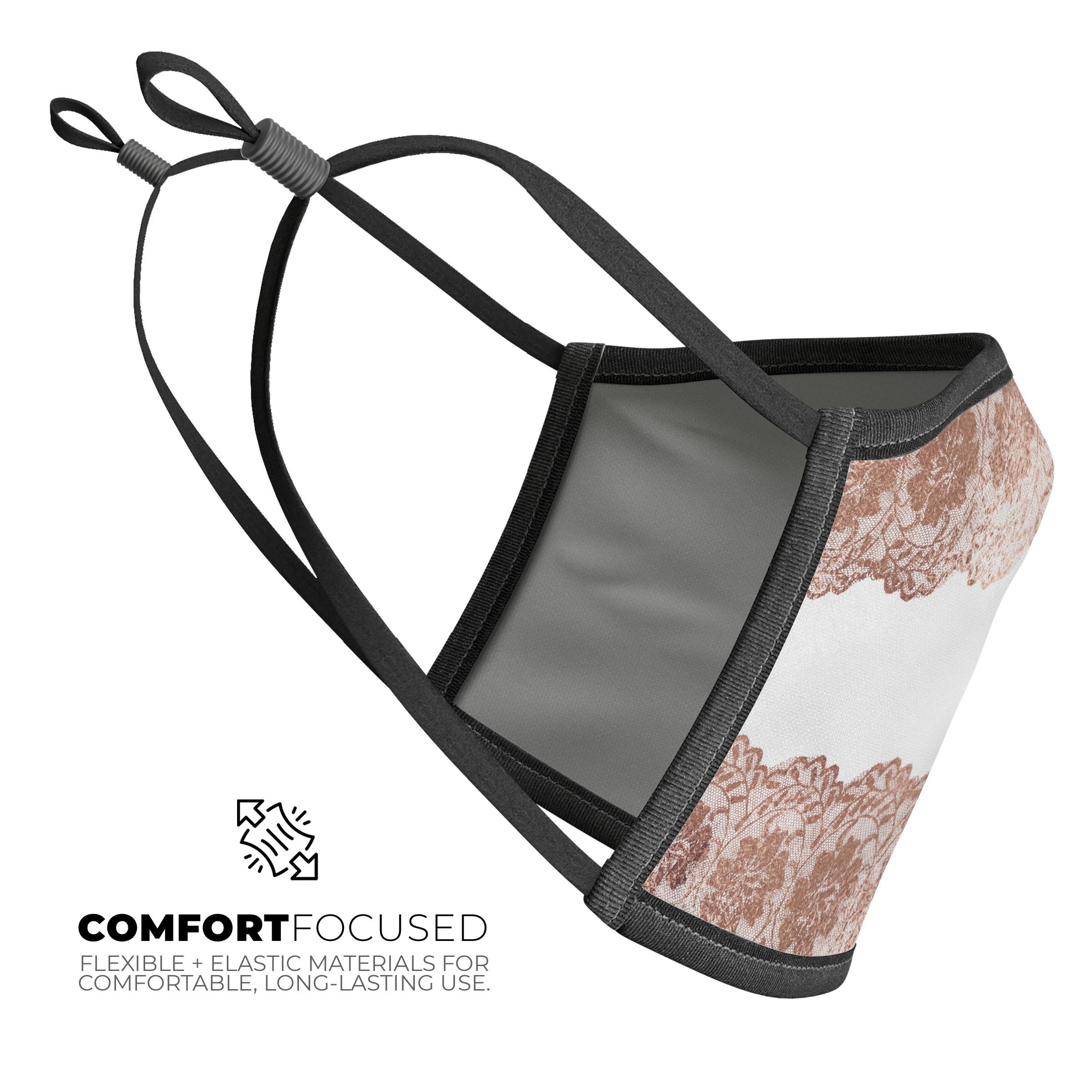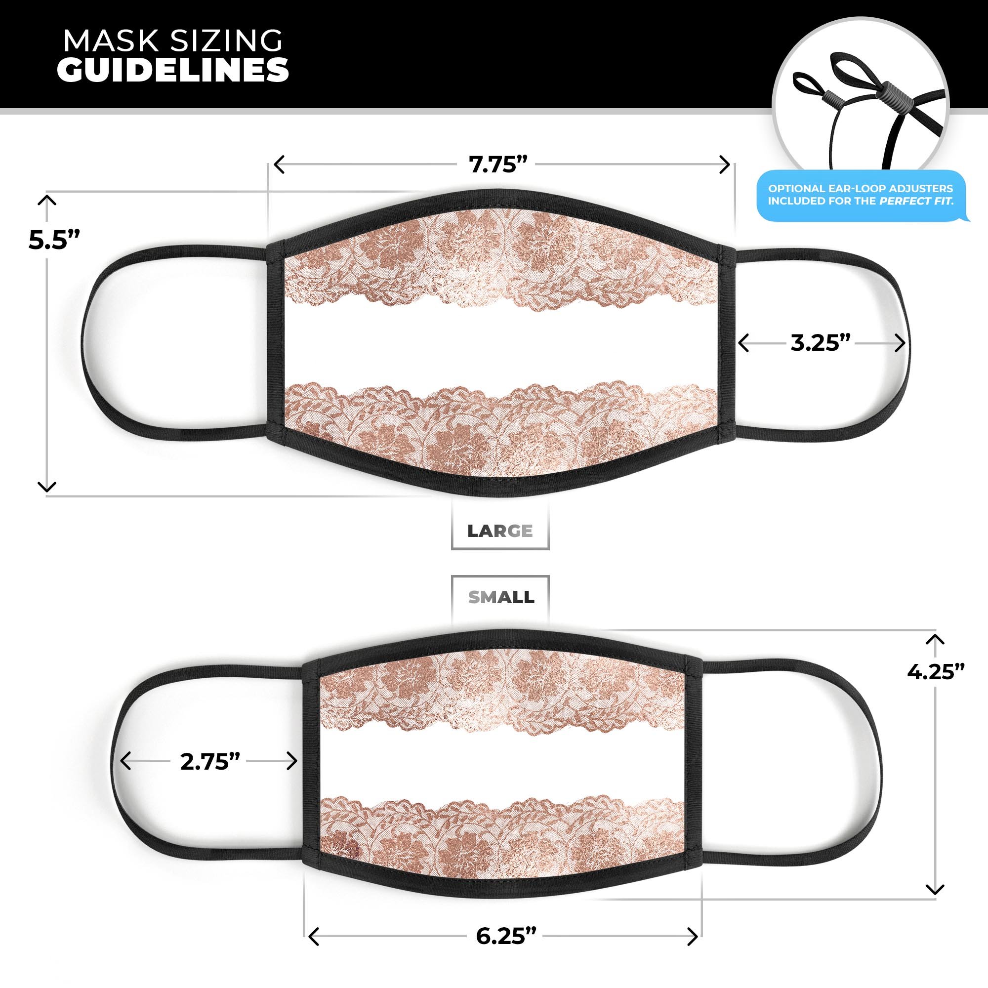 We take pride in our American-made products. Each Rose Gold Lace Pattern mouth cover is printed on demand after each order, ensuring that you receive a fresh and high-quality product. Our masks are packed and shipped directly from our warehouse in Danville, Virginia, supporting local manufacturing and craftsmanship.