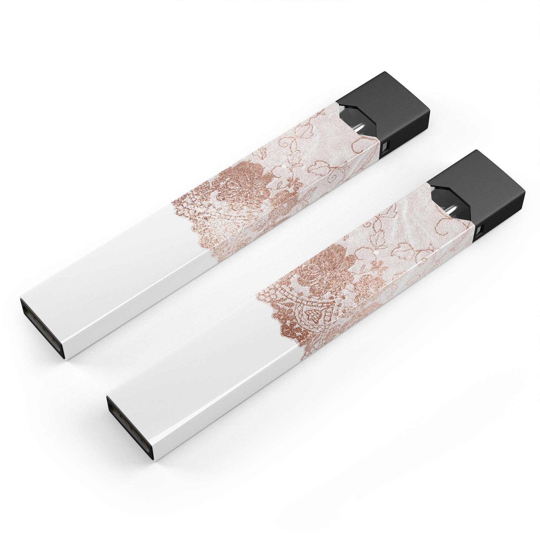 Introducing the Rose Gold Lace Pattern 13 - Premium Decal Protective Skin-Wrap Sticker, the perfect accessory for your JUUL vaping device. This stylish skin not only enhances the aesthetic appeal of your device but also provides a layer of protection against scratches and daily wear. With its unique rose gold lace design, you can stand out from the crowd and express your personal style.