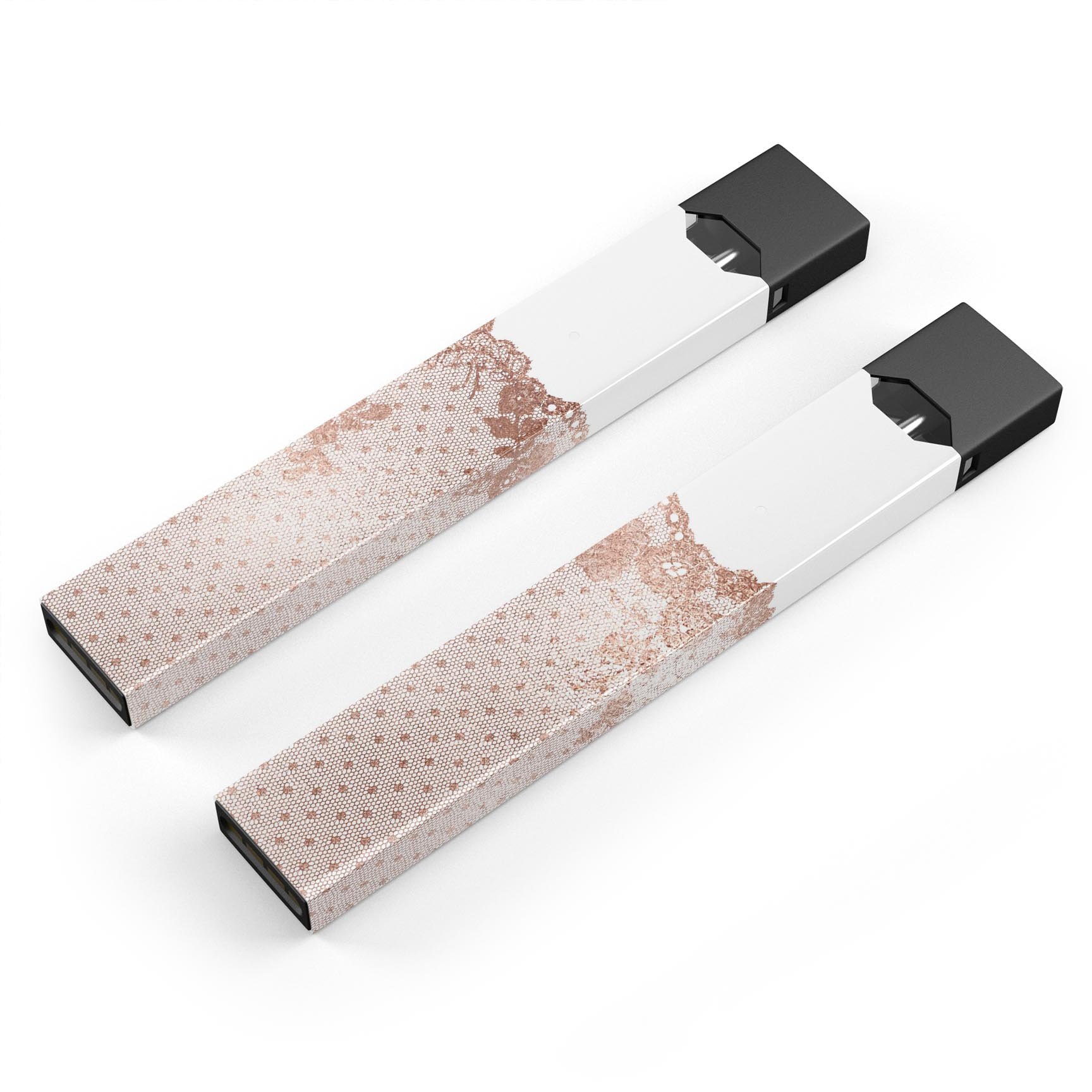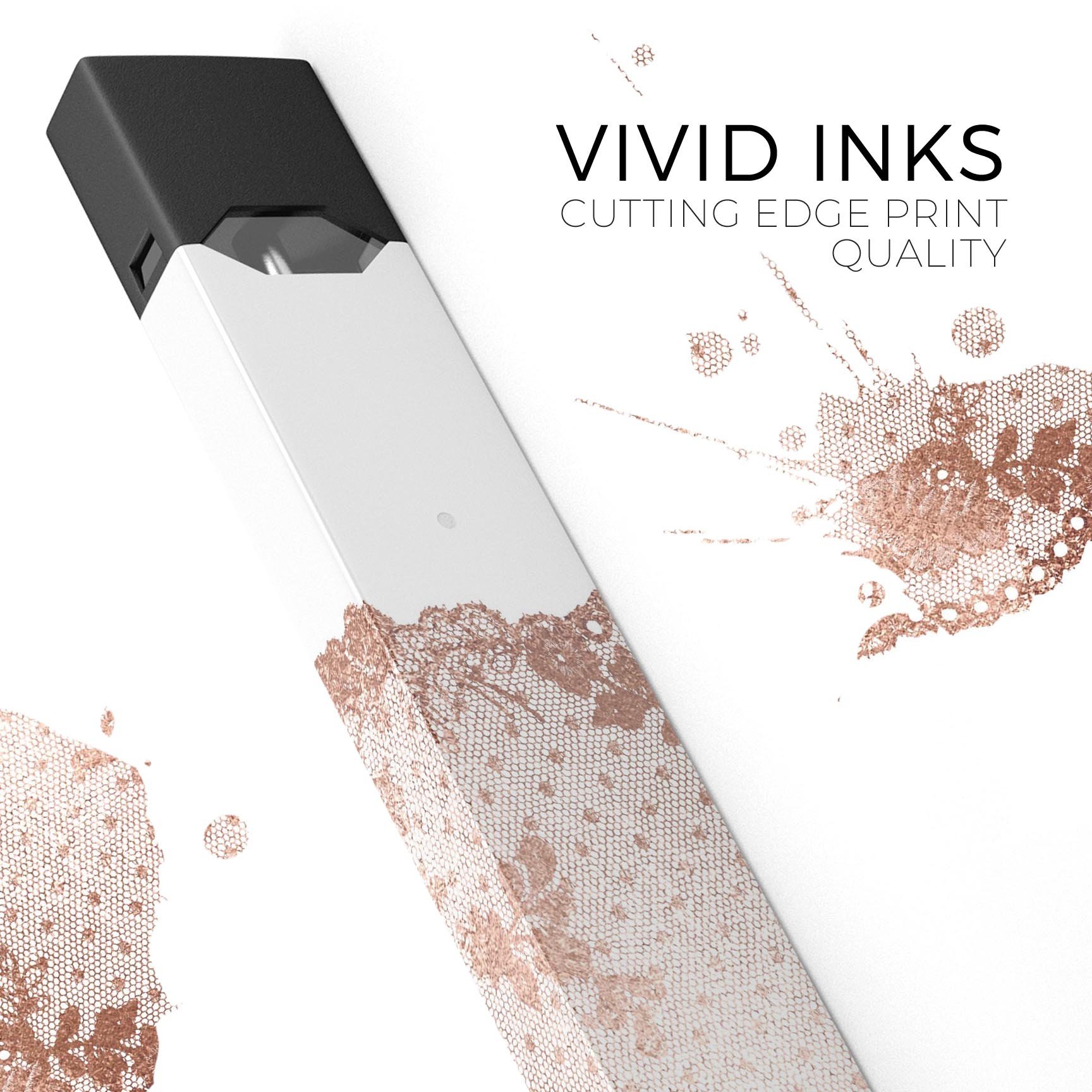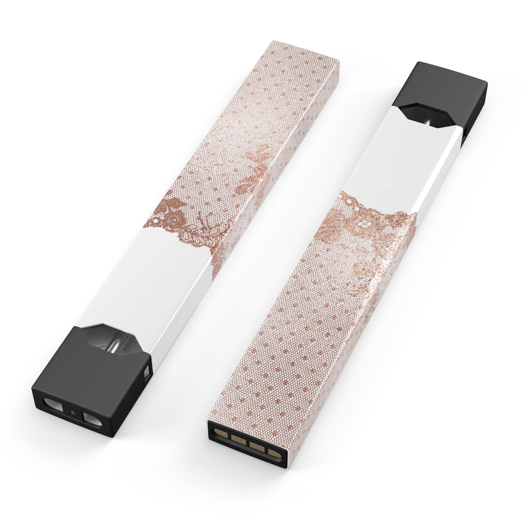 Please note that the Rose Gold Lace Pattern skin is designed specifically for the JUUL vaping device by JUUL Labs, Inc. It is important to understand that neither The Skin Dudes nor this product are provided, endorsed, sponsored by, or affiliated with JUUL Labs, Inc. JUUL and JUULPOD are trademarks of JUUL Labs, Inc. This skin is a third-party accessory that enhances the functionality and appearance of your JUUL device.