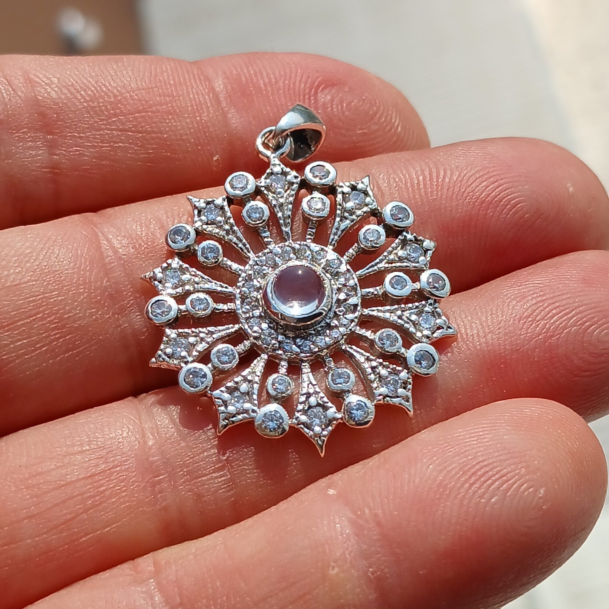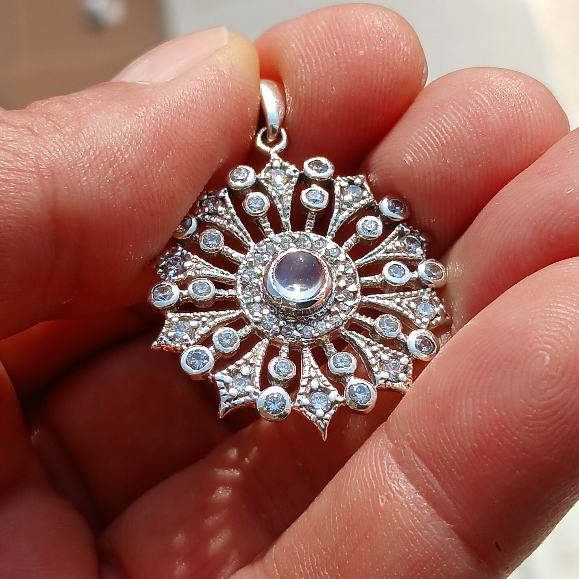 Dropship Round Moonstone Amulet, Sun Pendant, Sterling Silver Pendant,
