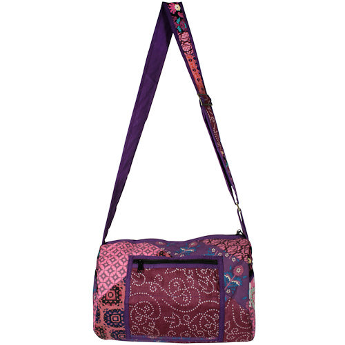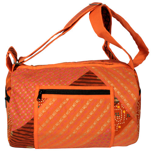 What sets the Round Patchwork Sports Bag apart is its unique handmade quality. Each bag is crafted by the talented youth at Lakshya shelter home in Faridabad, India. Lakshya is dedicated to supporting children and youth who have run away from their homes, providing them with vocational training and educational opportunities. By purchasing this bag, you are not only acquiring a beautiful product but also contributing to a noble cause that helps these young artisans build a better future.