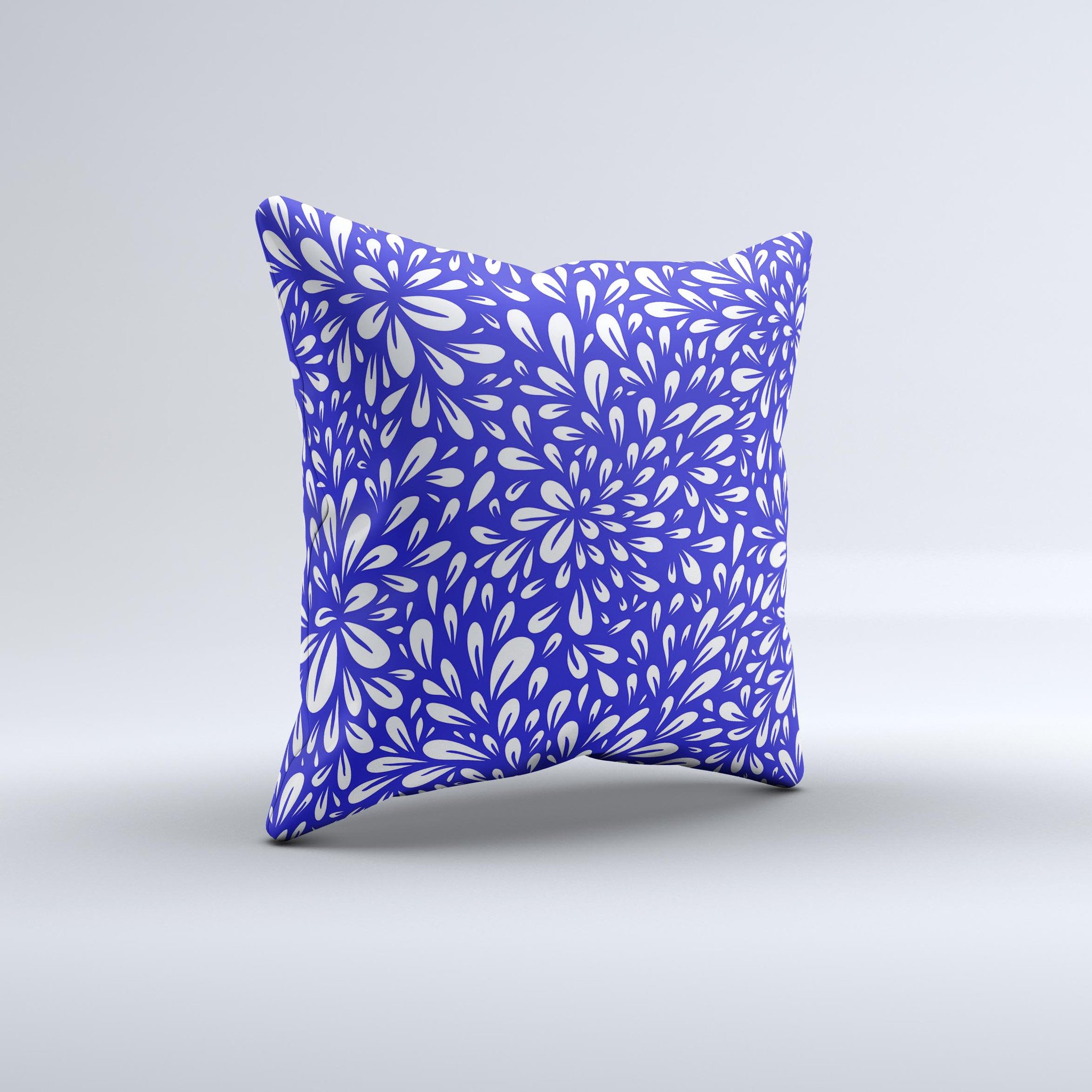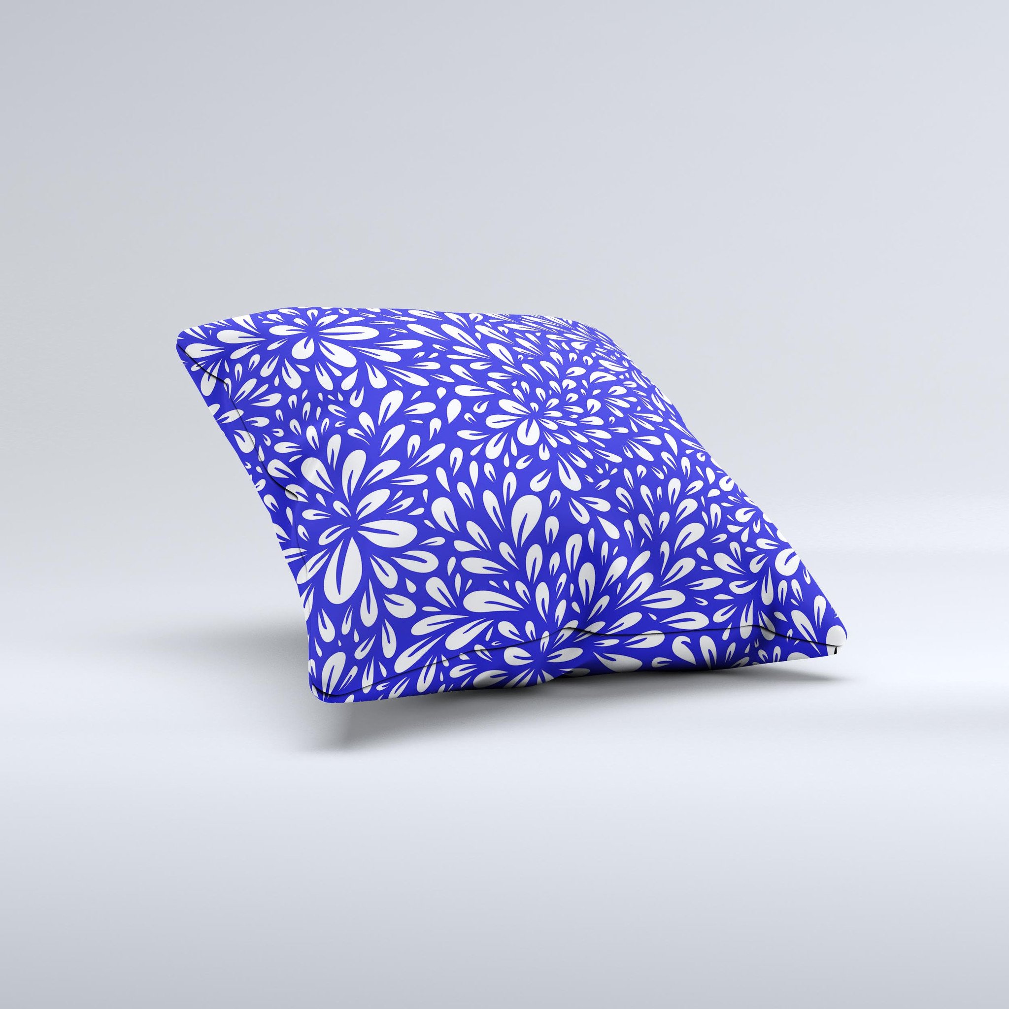 This decorative throw pillow features a high thread count covering, similar to those found in high-end stores. The luxurious feel of the fabric adds an elegant touch to your living space, making it perfect for accentuating your sofa, bed, or favorite chair. The combination of royal blue and white floral designs creates a vibrant yet soothing aesthetic that complements various interior styles.