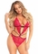 Scalloped lace wrap around teddy with adjustable cross over back straps and brazilian panty.