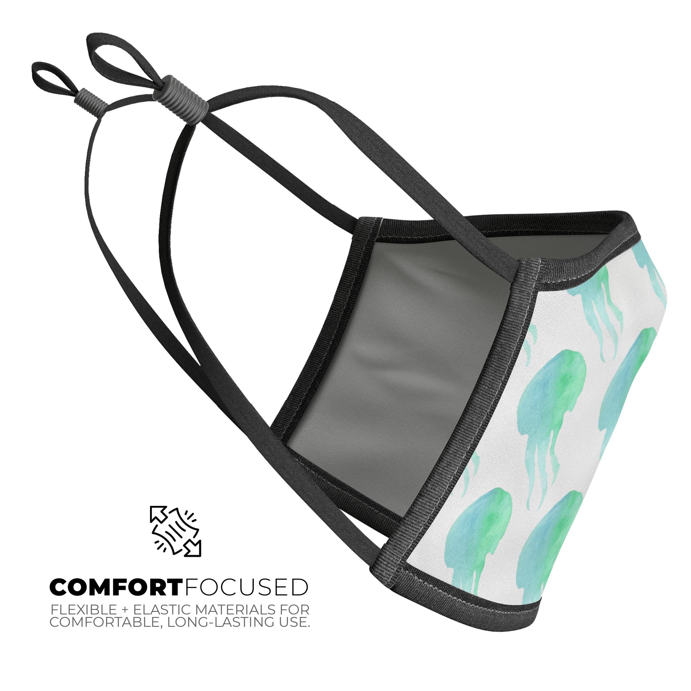 Introducing the Seamless WaterColor Jellyfish mouth cover, a unique and stylish face mask designed for comfort and functionality. Made in the USA, this mask is crafted using advanced dye-sublimation techniques that ensure vibrant colors and intricate designs. The mask is not only visually appealing but also practical for everyday use, making it a perfect addition to your wardrobe.