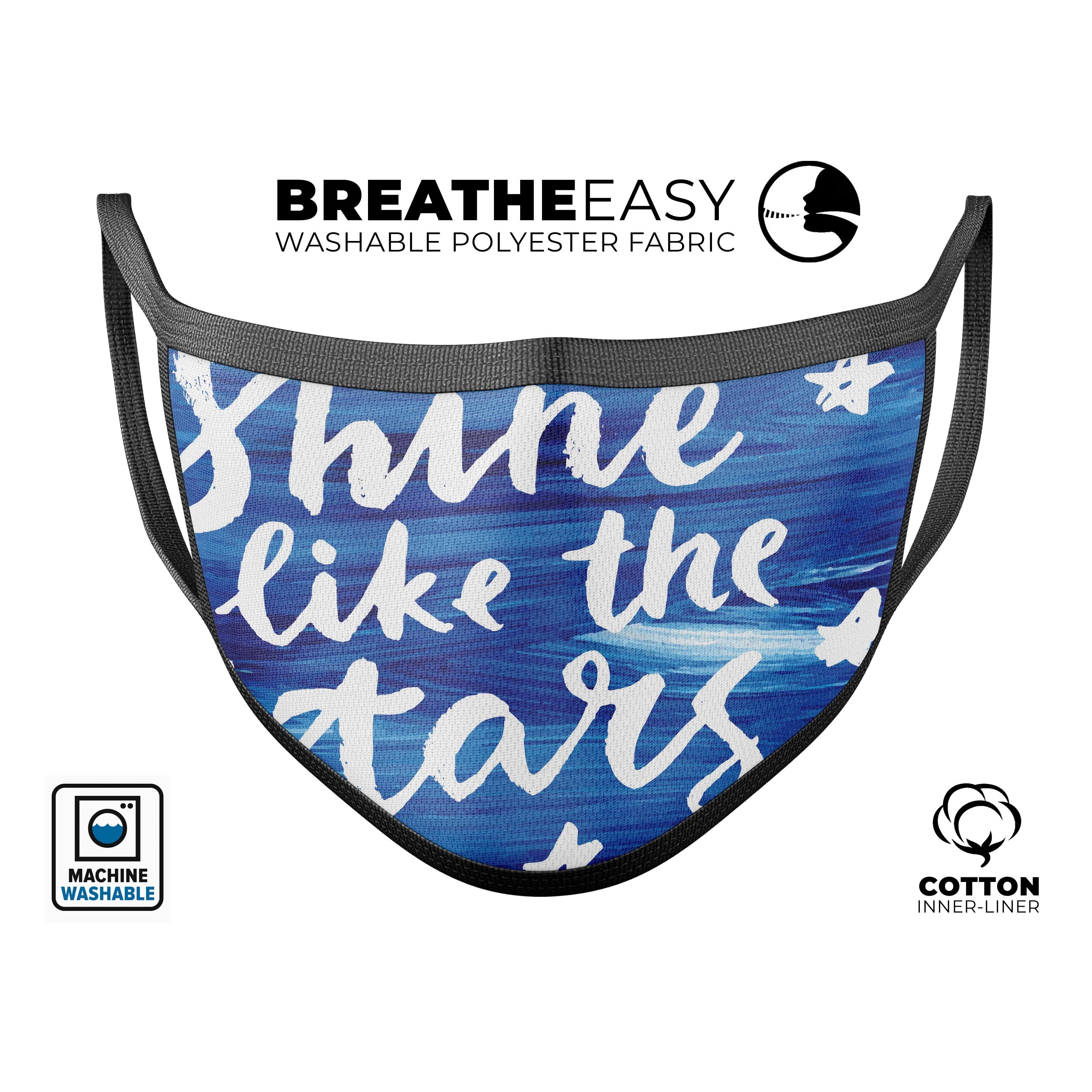 Introducing the Shine Like the Stars Mouth Cover, a premium quality face mask designed for comfort and style. Made in the USA, this unisex anti-dust cotton mouth cover is perfect for anyone looking to protect themselves while looking fashionable. Crafted using advanced dye-sublimation techniques, our masks are not only visually appealing but also functional, ensuring you can wear them comfortably throughout the day.
