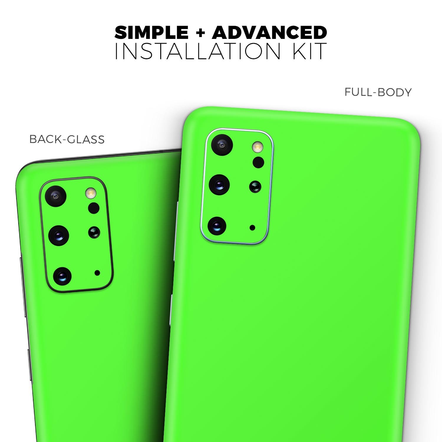 Solid Lime Green V2 Skin-Kit for Samsung Galaxy S20, showcasing a vibrant lime green color with a sleek design.