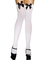 Opaque white thigh high stockings with satin black bows. One size fits most 90-160 lbs.