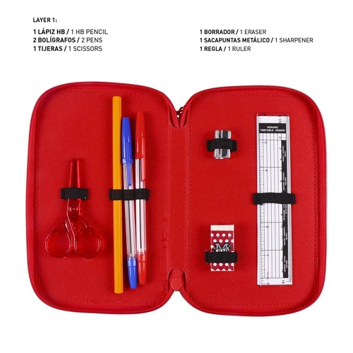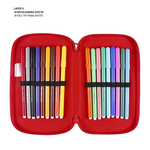 Dropship Triple Pencil Case Minnie Mouse 43 Pieces Red (12 x 19,5 x 6,5 cm)