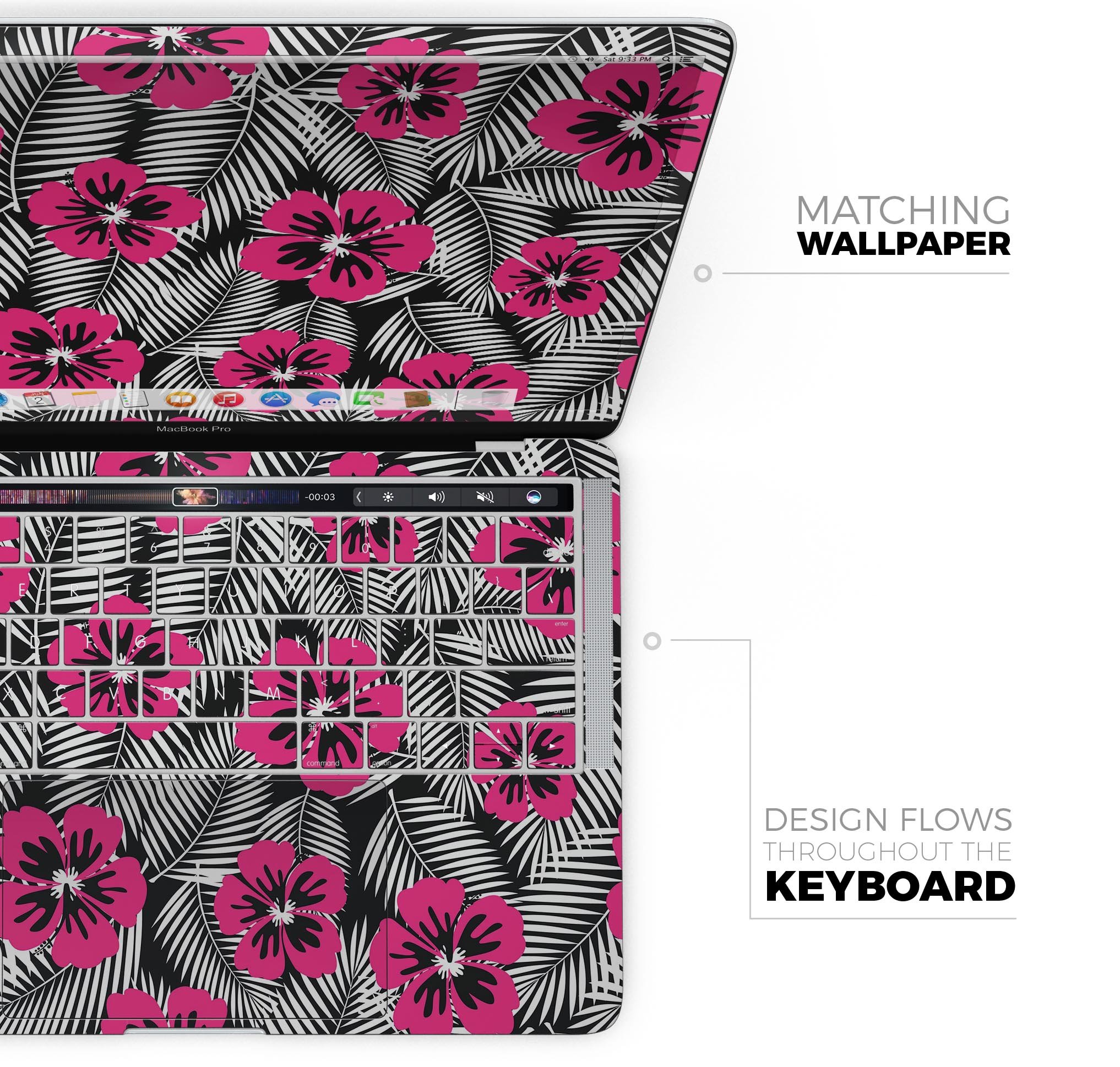 Enhance your MacBook's appearance with the Tropical Summer Hot Pink Floral Skin Decal Wrap Kit. This stylish skin allows you to personalize your device while providing essential protection against scratches and daily wear. Made from premium vinyl, this skin is designed to fit snugly on your MacBook without adding unnecessary bulk, ensuring that your device remains lightweight and portable.