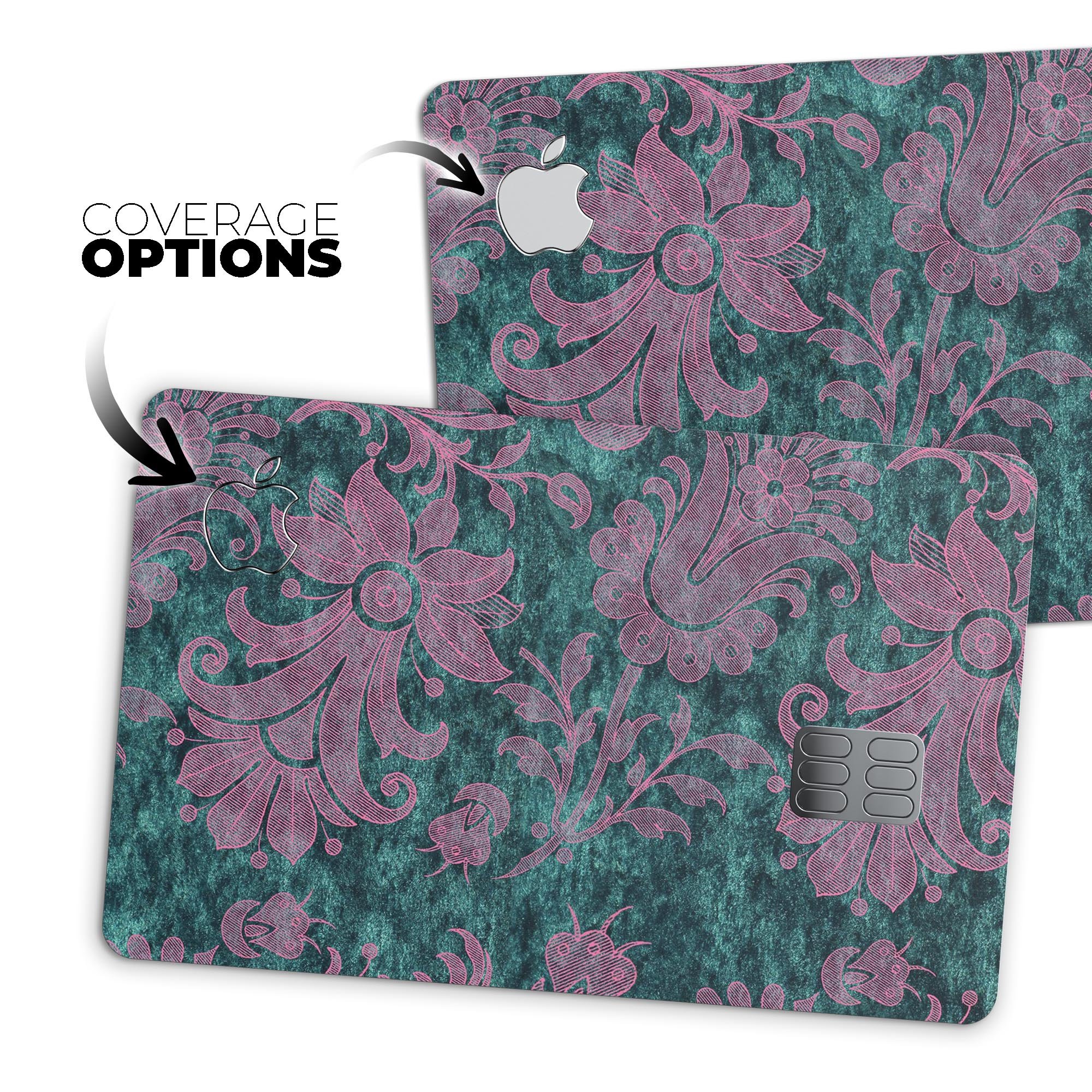 Introducing the Turquoise and Burgundy Floral Velvet - Premium Protective Decal, the perfect solution for safeguarding your new Apple Card. This stylish decal not only enhances the aesthetic appeal of your card but also provides robust protection against daily wear and tear. Made from high-quality premium vinyl, this decal is designed to withstand the rigors of everyday use while keeping your card looking pristine.
