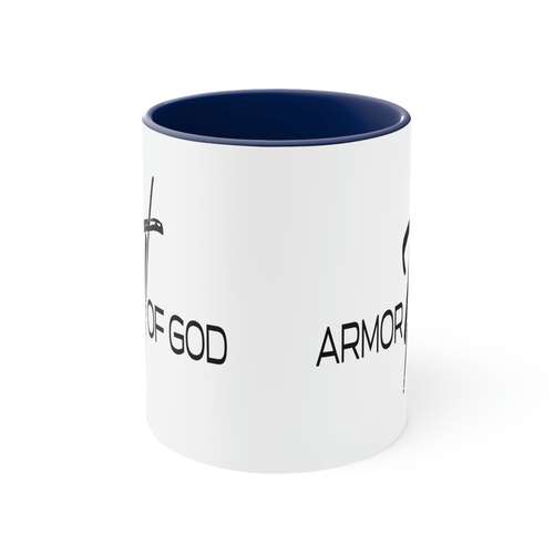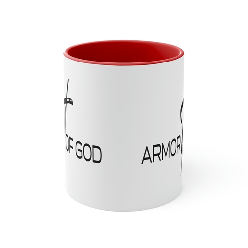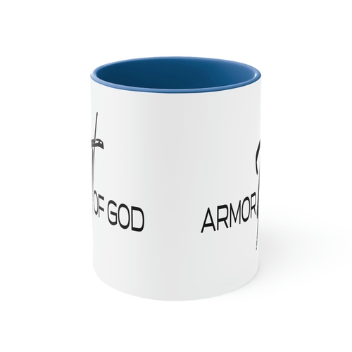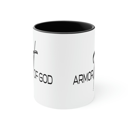 In summary, the Two-tone Accent Ceramic Mug 11oz featuring the Armor of God scripture quote is a perfect addition to your kitchen or office. With its stylish design, durable construction, and inspirational message, it is sure to become your go-to mug for all your favorite beverages.