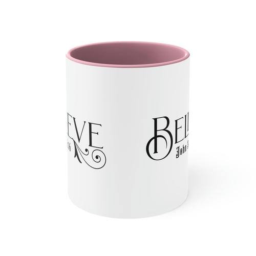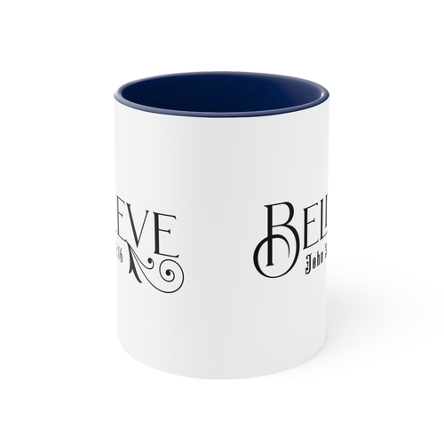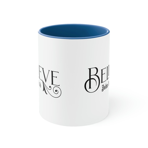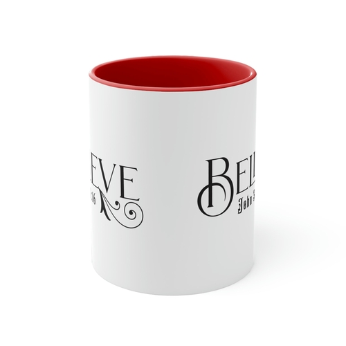 Dropship Two-tone Accent Ceramic Mug 11oz - Believe John 3:16 Scripture Bible