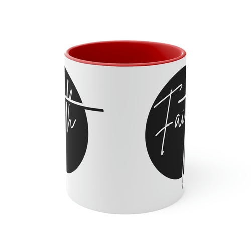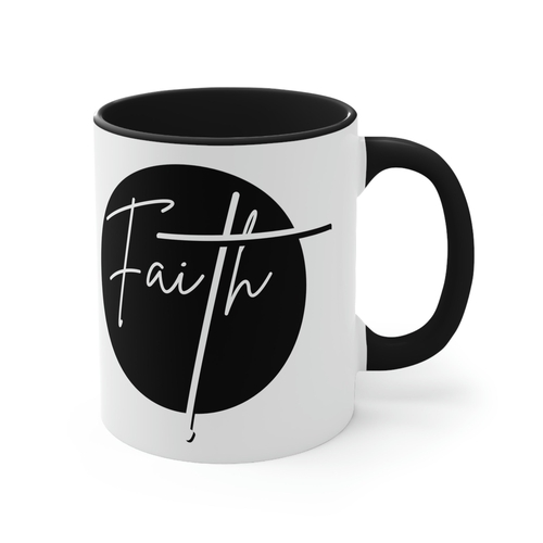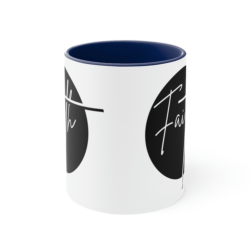 In summary, the Two-tone Accent Ceramic Mug 11oz with Faith illustration is a delightful addition to your drinkware collection. With its stylish design, comfortable handle, and customizable features, it is perfect for anyone looking to add a personal touch to their beverage experience.