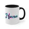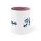 Introducing the Two-tone Accent Ceramic Mug, a delightful addition to your kitchenware that combines style and functionality. This 11oz mug is designed to elevate your coffee-drinking experience with its vibrant pink, white, and blue abstract design. The eye-catching color contrast not only makes it a beautiful piece but also a conversation starter during your morning coffee routine.