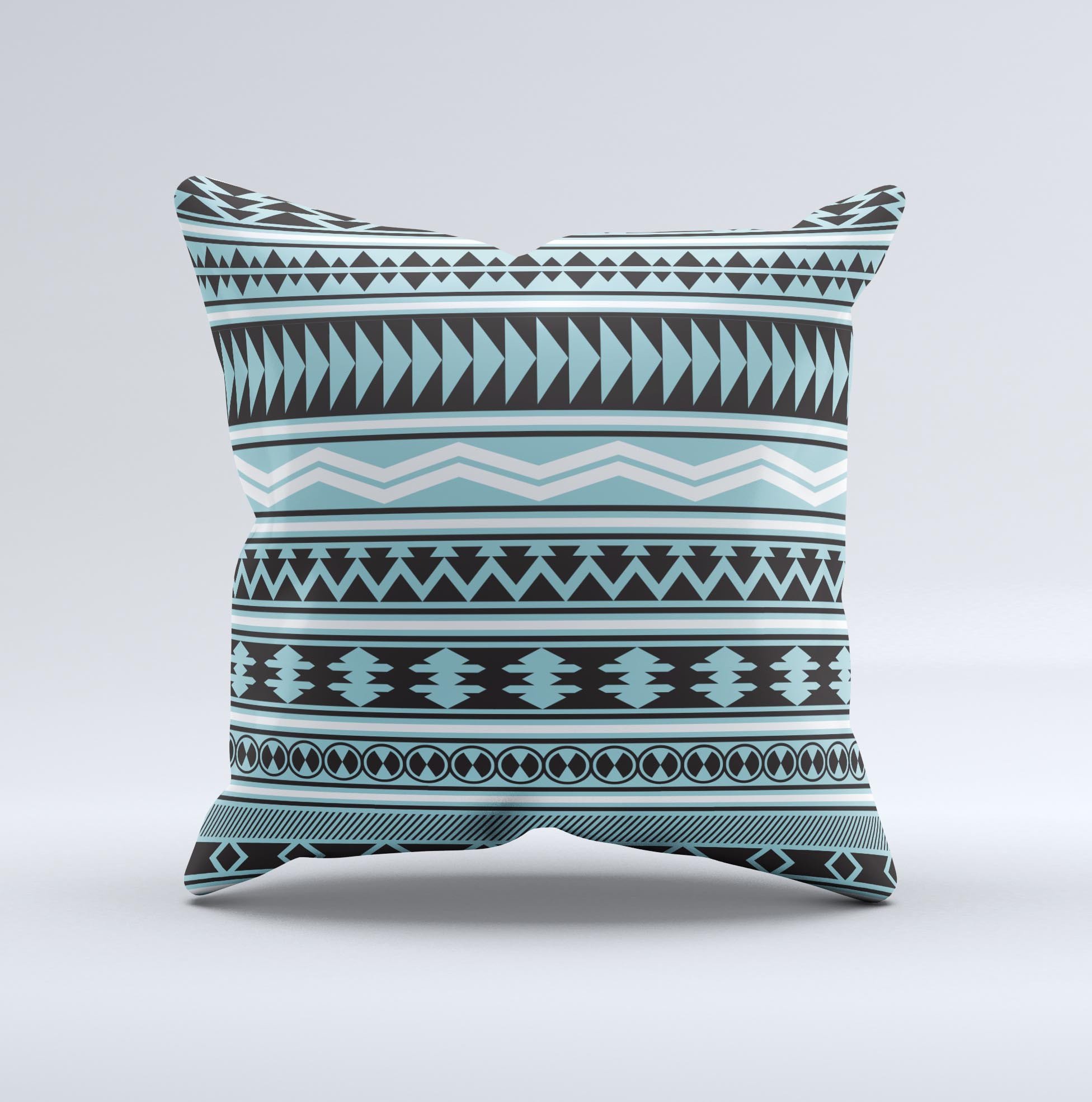 Introducing the Vector Blue & Black Aztec Pattern V2 Ink-Fuzed Decorative Throw Pillow, a stunning addition to your home decor that combines style and comfort. Each pillow is meticulously crafted in Virginia, ensuring that you receive a product that is not only beautiful but also made with pride and care. Unlike mass-produced items, our pillows tell a story, reflecting the artistry and dedication of our skilled artisans.