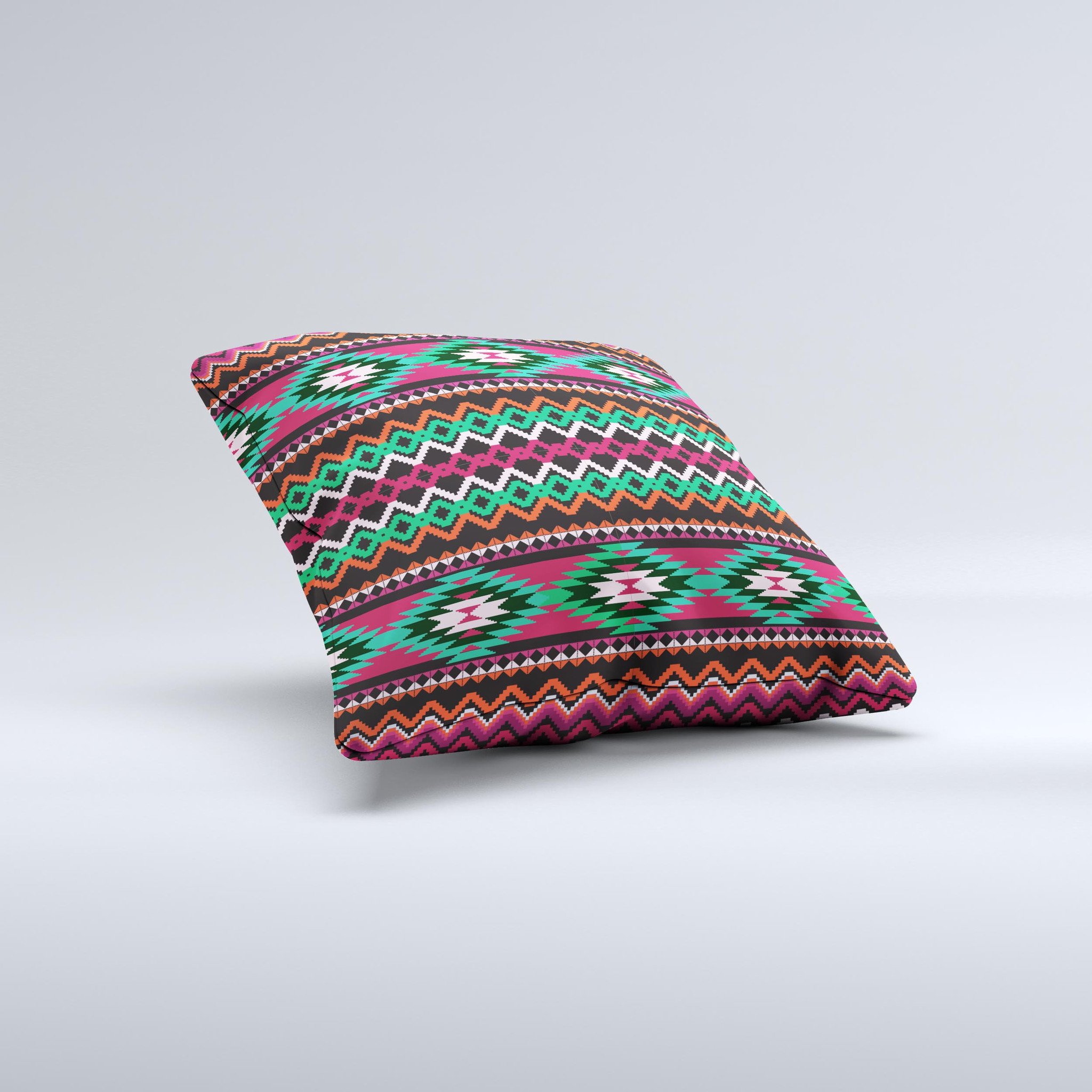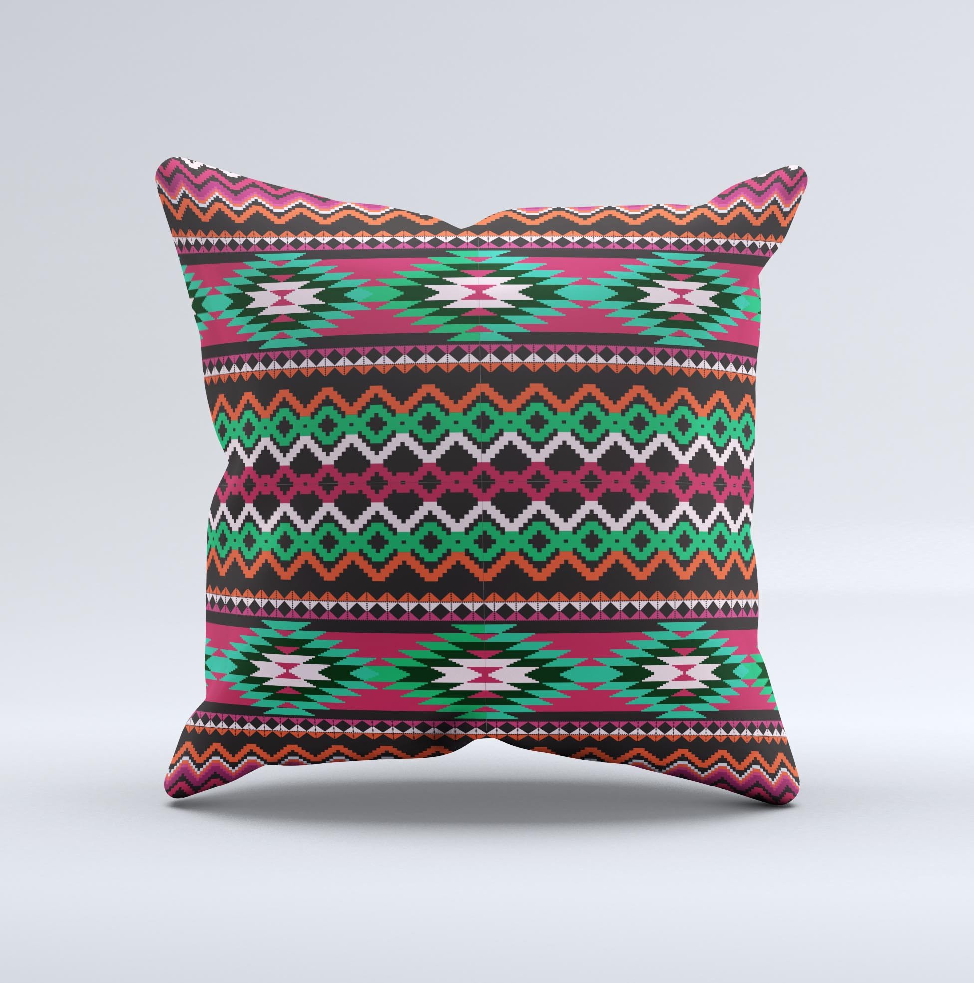 Introducing the Vector Green & Pink Aztec Pattern Ink-Fuzed Decorative Throw Pillow, a stunning addition to your home decor that combines style and comfort. Each pillow is meticulously crafted in Virginia, ensuring that you receive a unique piece that tells a story. Unlike mass-produced items, our pillows undergo an extensive production process, making them a perfect choice for those who appreciate quality and individuality.