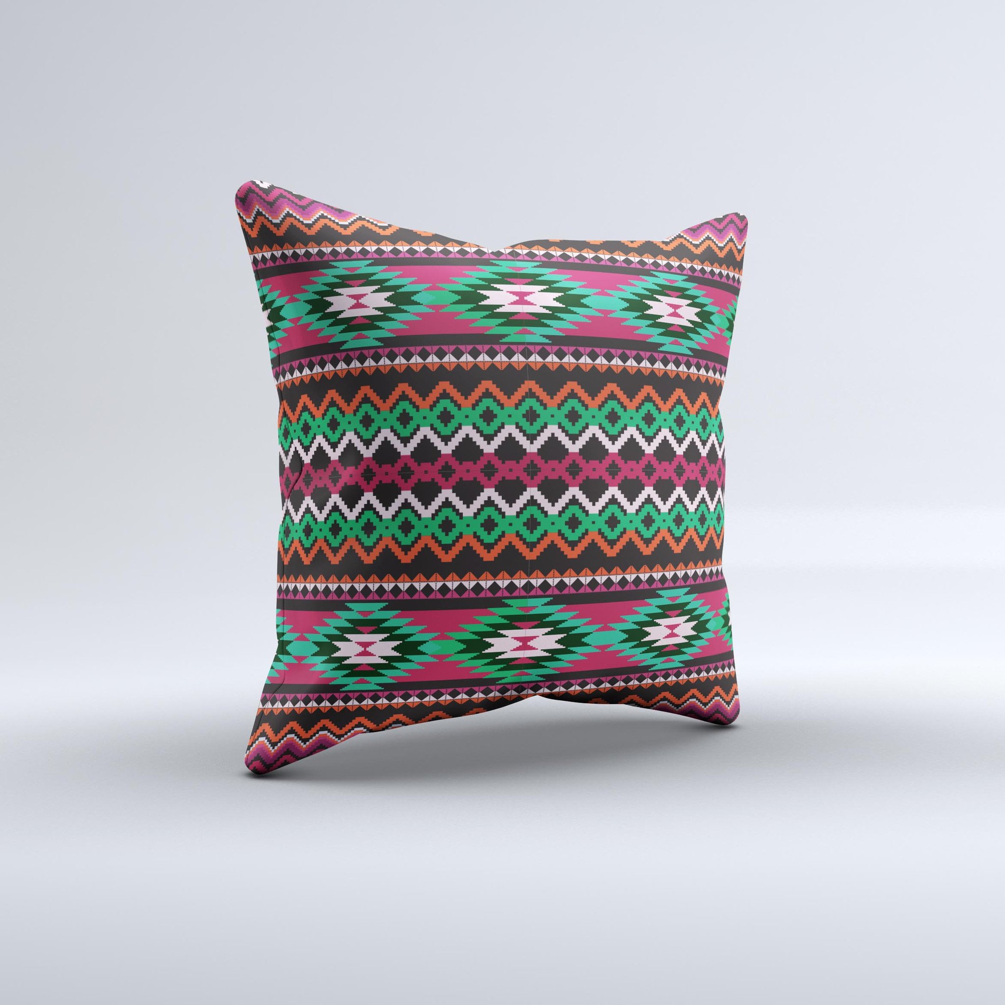 The Vector Green & Pink Aztec Pattern Ink-Fuzed Decorative Throw Pillow is not just a pillow; it's a statement piece. Whether you place it on your sofa, bed, or accent chair, it will instantly elevate your decor. Its vibrant colors and intricate design make it a versatile accessory that complements various interior styles, from bohemian to modern chic.