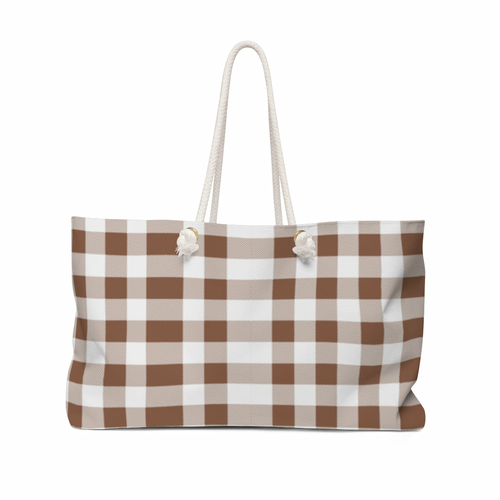 In summary, the Weekender Tote Bag in brown and white plaid is the ultimate combination of style, functionality, and durability. With its spacious design, comfortable carrying options, and chic appearance, it's the perfect companion for all your weekend adventures. Don't miss out on this essential tote bag that meets all your needs!