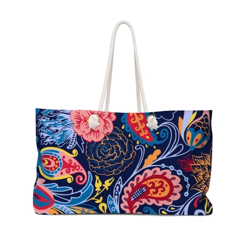 Introducing our stunning Weekender Tote Bag in a beautiful floral print, designed for the modern woman on the go. This oversized tote is not just a bag; it's a statement piece that combines style and functionality. Whether you're heading to the beach, a weekend getaway, or just running errands in town, this tote is the perfect companion. Its wide mouth allows for easy access to your belongings, making packing and unpacking a breeze.