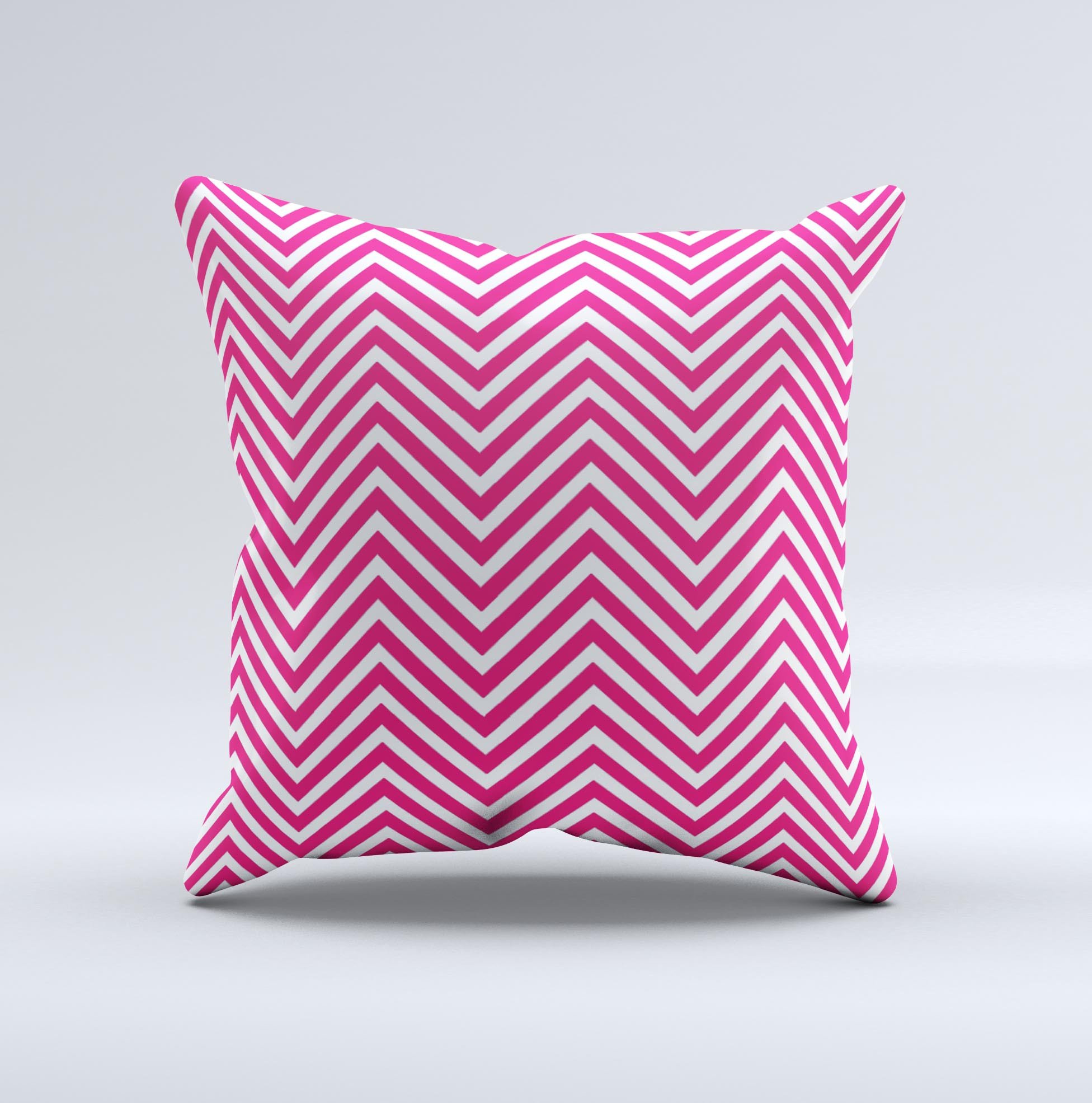 The eye-catching white and pink sharp chevron pattern adds a modern touch to any room. Each graphic is hand-produced, which means that slight imperfections may occur during the printing process. These imperfections are not flaws; rather, they contribute to the pillow's unique appearance and showcase the handmade nature of the product. This individuality is what sets our pillows apart from mass-produced alternatives.