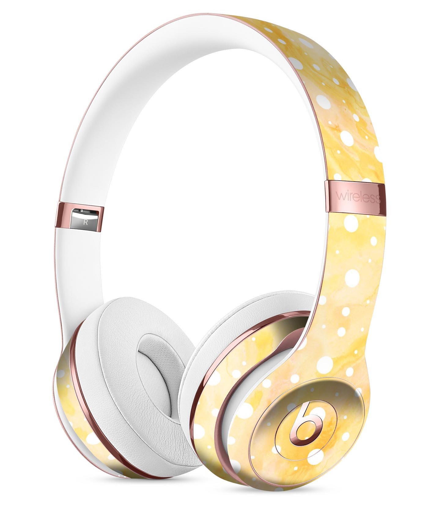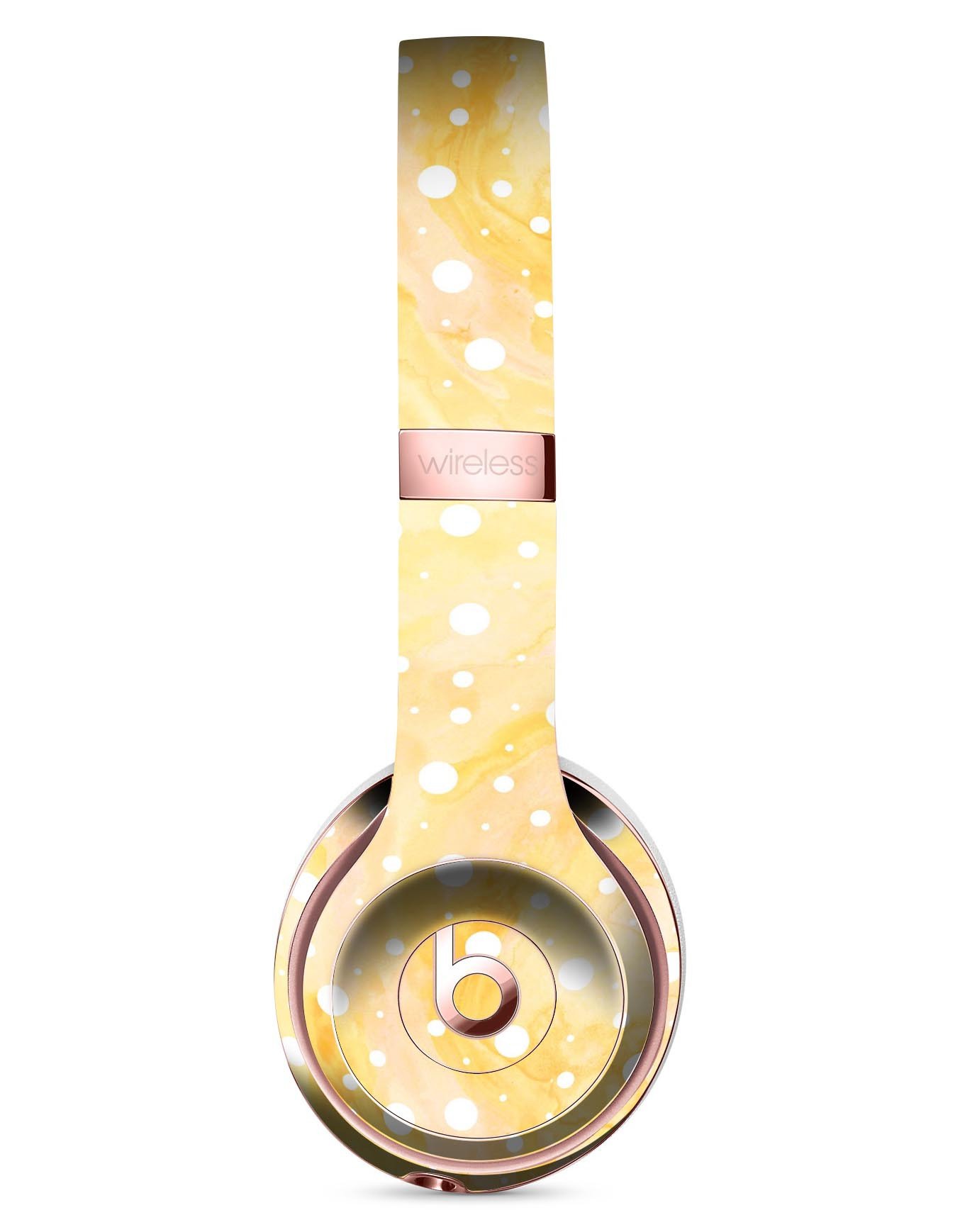 Enhance the appearance of your Beats by Dre Solo 3 Wireless Headphones with our vibrant White Polka Dots Over Yellow Orange Grunge Full-Body Skin Kit. This stylish skin not only adds a unique flair to your headphones but also provides essential protection against scratches and wear. Made from premium vinyl, our skin is designed to withstand daily use while keeping your device looking fresh and new.